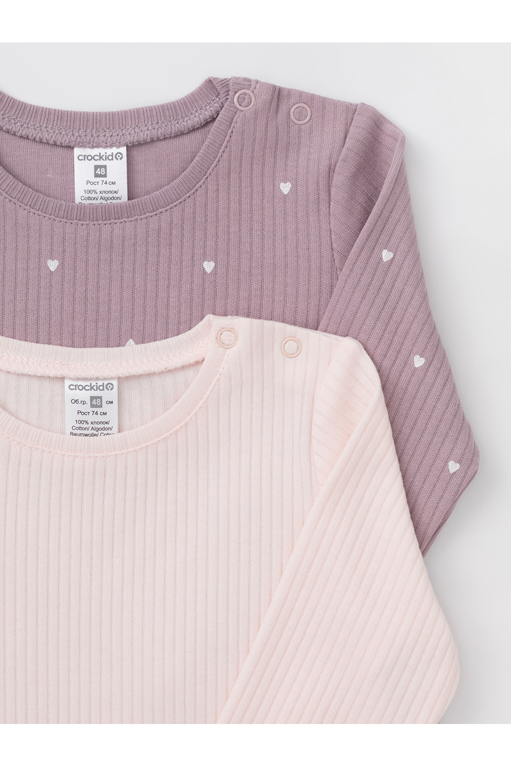 Джемперы лонгсливы для новорождённых из мягкого эластичного трикотажа, произведённого из натурального хлопка. В упаковке 2 штуки. Застёгиваются на плече на кнопки. Все трикотажные полотна производятся в соответствии с нормами швейцарского сертификата ЭкоТекс.