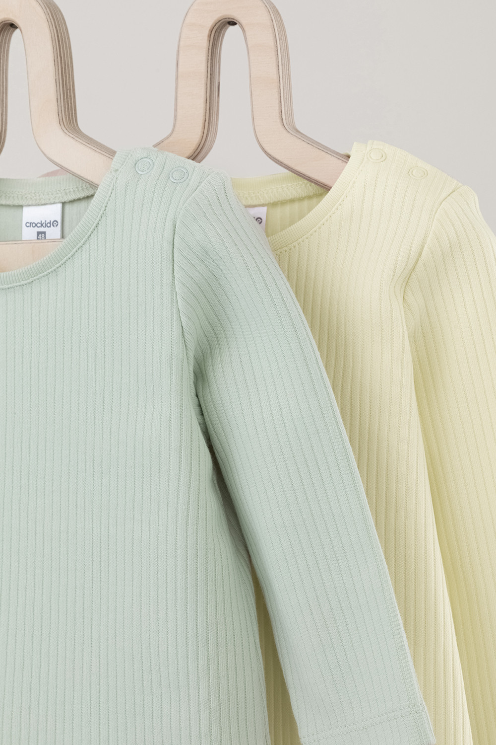 Джемперы лонгсливы для новорождённых из мягкого эластичного трикотажа, произведённого из натурального хлопка. В упаковке 2 штуки. Застёгиваются на плече на кнопки. Все трикотажные полотна производятся в соответствии с нормами Швейцарского сертификата ЭкоТекс.