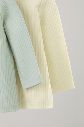 Джемперы лонгсливы для новорождённых из мягкого эластичного трикотажа, произведённого из натурального хлопка. В упаковке 2 штуки. Застёгиваются на плече на кнопки. Все трикотажные полотна производятся в соответствии с нормами Швейцарского сертификата ЭкоТекс.