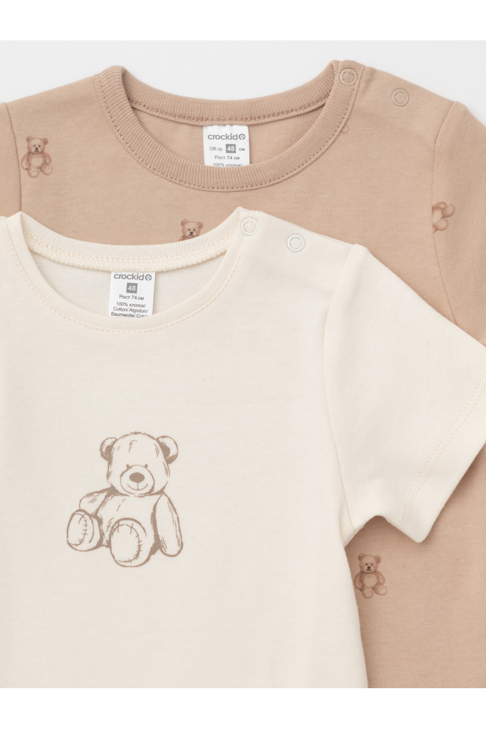 Футболки для мальчика из высококачественного трикотажа интерлок. В упаковке 2 штуки. Для удобства на плече застёжка на кнопки. Оригинальная набивка и принт выполнены из стойких гипоаллергенных текстильных красителей. Все трикотажные полотна производятся в соответствии с нормами швейцарского сертификата ЭкоТекс.