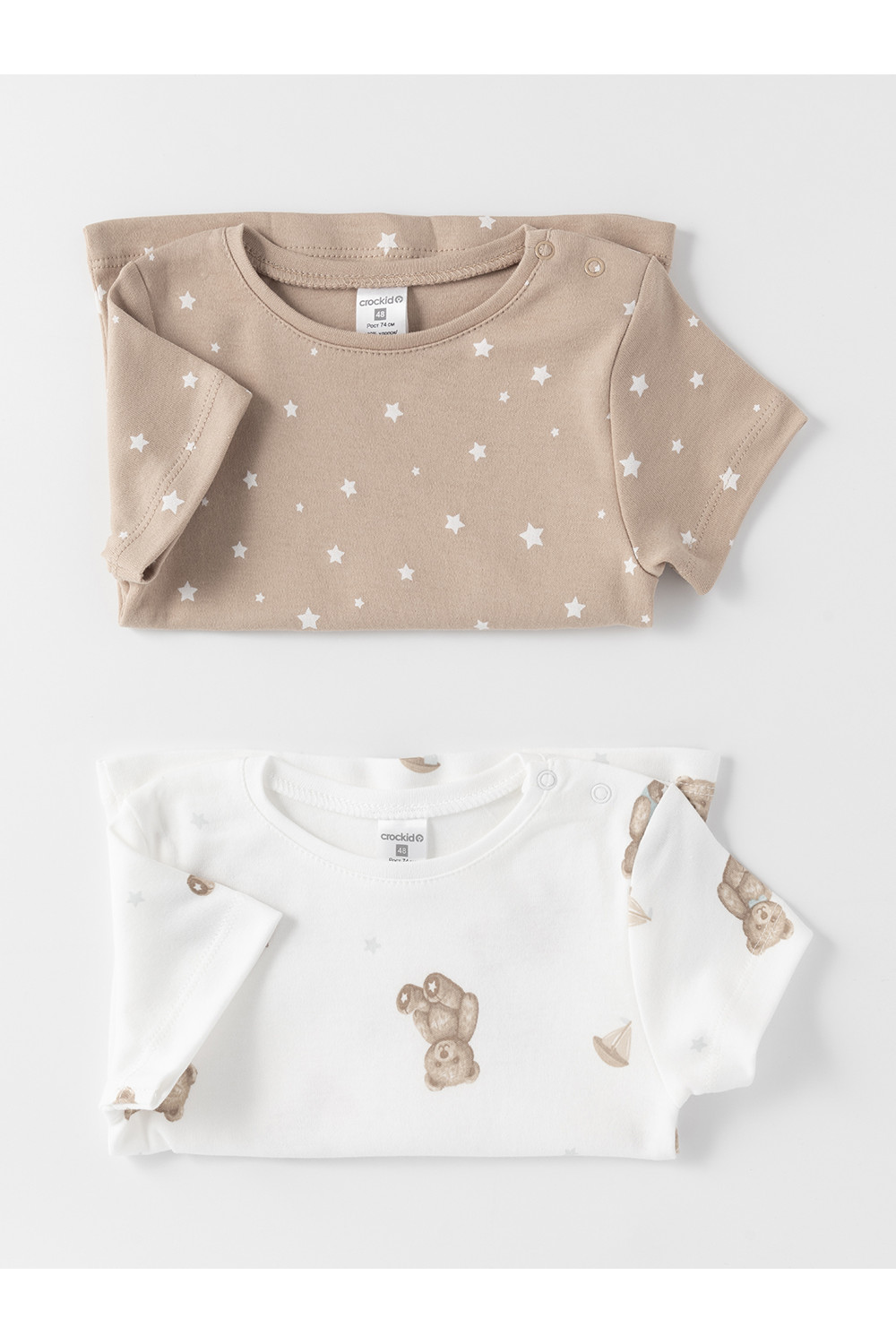Футболки для мальчика из высококачественного трикотажа, произведённого из натурального хлопка. В упаковке 2 штуки. Для удобства на плече застёжка на кнопки. Оригинальная набивка выполнена из стойких гипоаллергенных текстильных красителей. Все трикотажные полотна производятся в соответствии с нормами швейцарского сертификата ЭкоТекс.