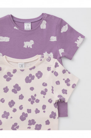 Футболки для девочки из высококачественного трикотажа интерлок. В упаковке 2 штуки. Для удобства на плече застёжка на кнопки. Оригинальная набивка выполнена из стойких гипоаллергенных текстильных красителей. Все трикотажные полотна производятся в соответствии с нормами швейцарского сертификата ЭкоТекс.
