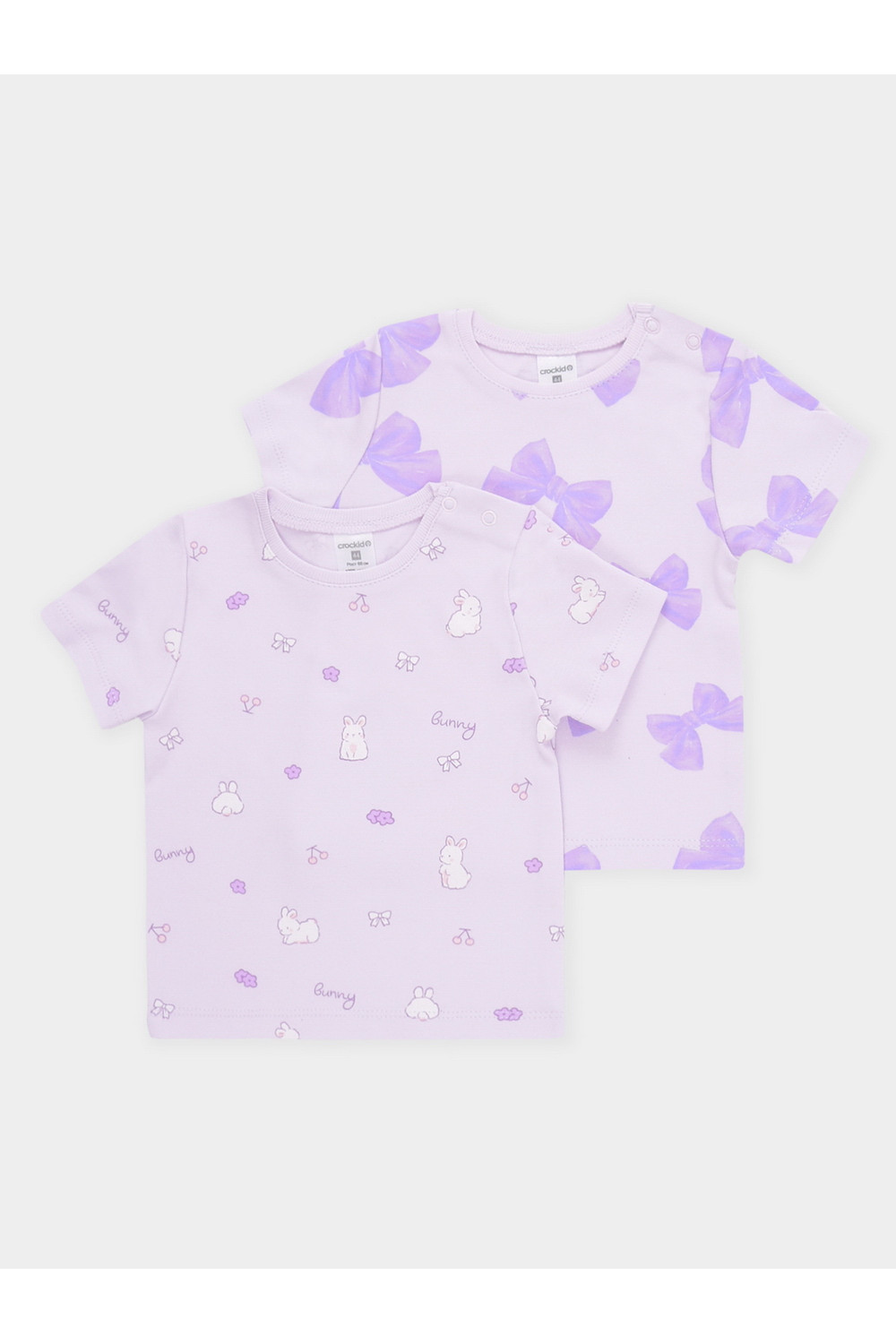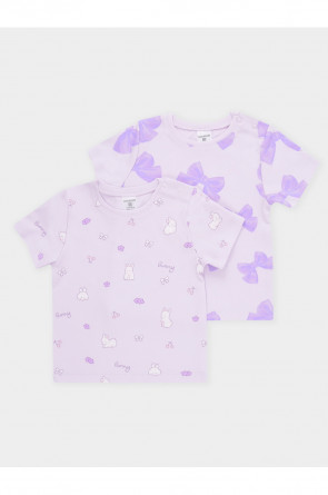 Футболки для девочки из высококачественного трикотажа интерлок. В упаковке 2 штуки. Для удобства на плече застёжка на кнопки. Оригинальная набивка выполнена из стойких гипоаллергенных текстильных красителей. Все трикотажные полотна производятся в соответствии с нормами швейцарского сертификата ЭкоТекс.