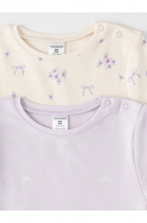 Футболки для девочки из высококачественного трикотажа, произведённого из натурального хлопка. В упаковке 2 штуки. Для удобства на плече застёжка на кнопки. Оригинальная набивка выполнена из стойких гипоаллергенных текстильных красителей. Все трикотажные полотна производятся в соответствии с нормами швейцарского сертификата ЭкоТекс.