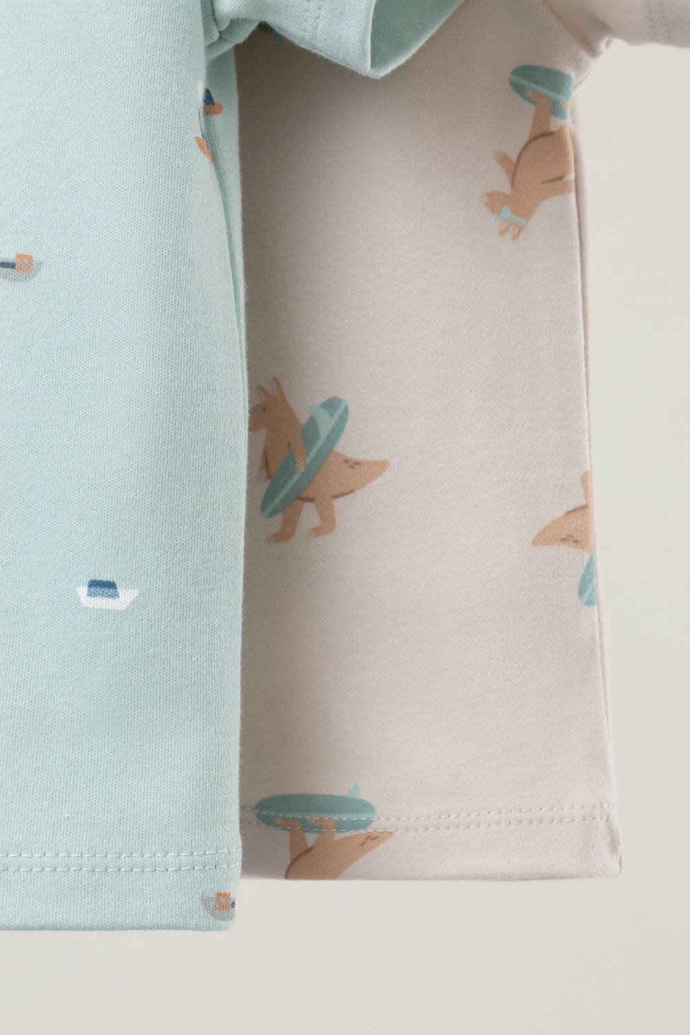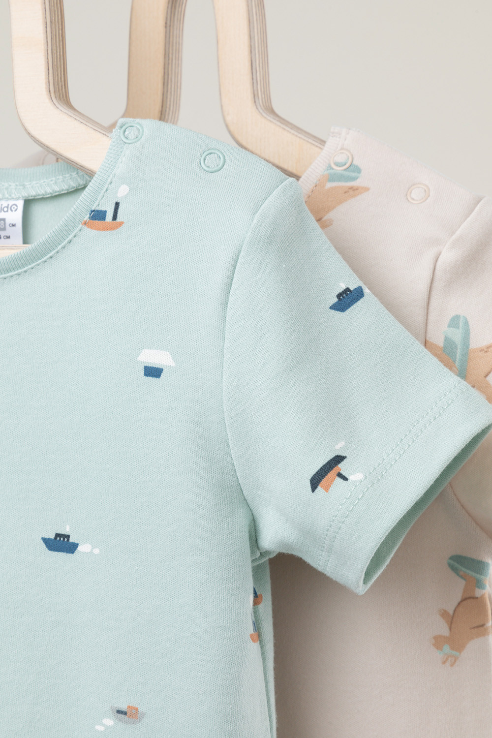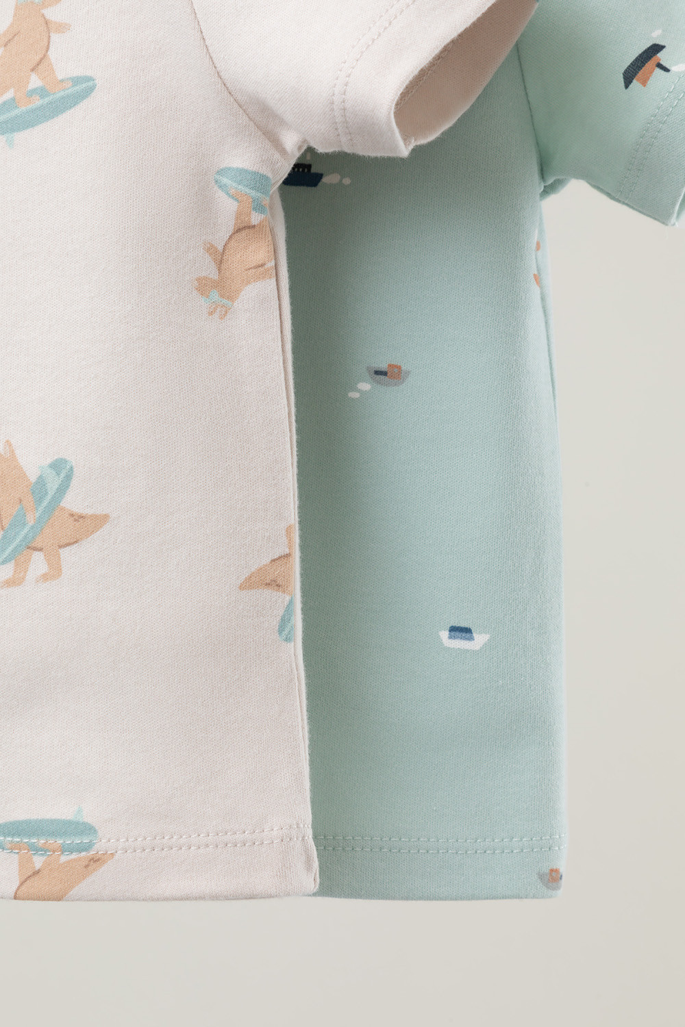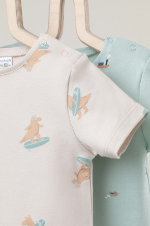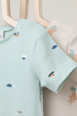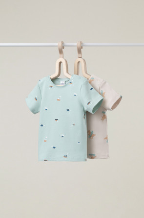 Футболки для мальчика из высококачественного трикотажа интерлок. В упаковке 2 штуки. Для удобства на плече застёжка на кнопки. Оригинальная набивка выполнена из стойких гипоаллергенных текстильных красителей. Все трикотажные полотна производятся в соответствии с нормами Швейцарского сертификата ЭкоТекс.