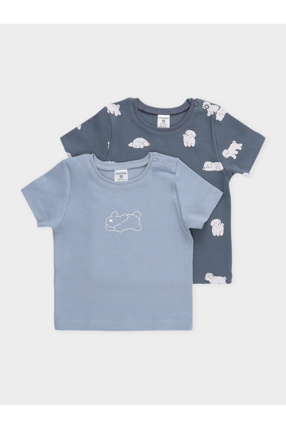 Футболки для мальчика из высококачественного трикотажа интерлок. В упаковке 2 штуки. Для удобства на плече застёжка на кнопки. Оригинальная набивка и принт выполнены из стойких гипоаллергенных текстильных красителей. Все трикотажные полотна производятся в соответствии с нормами швейцарского сертификата ЭкоТекс.