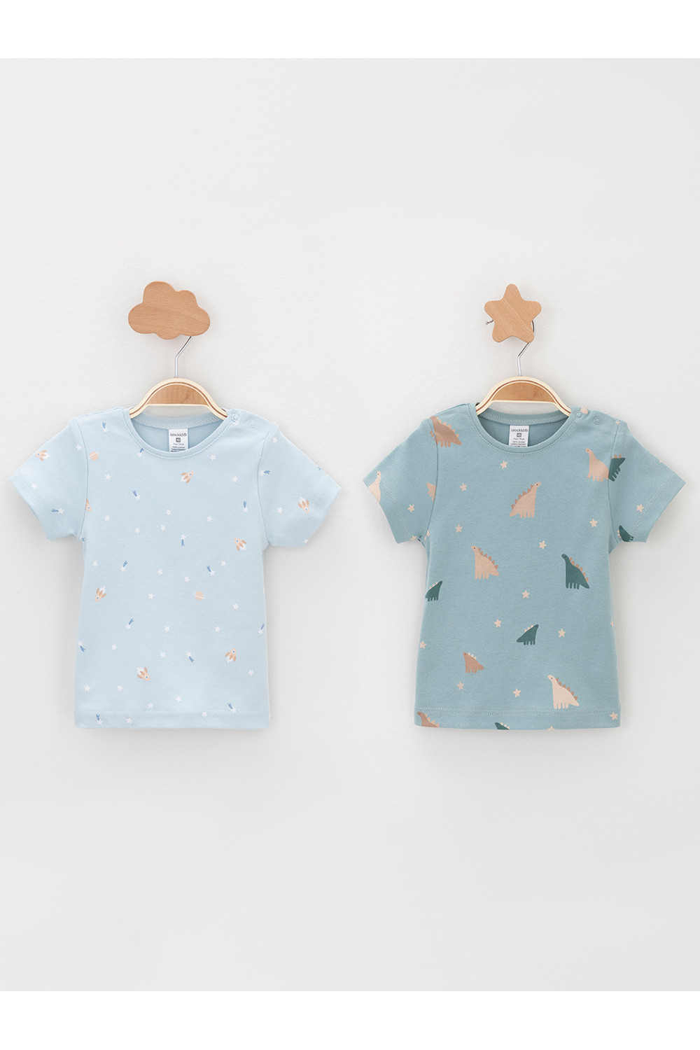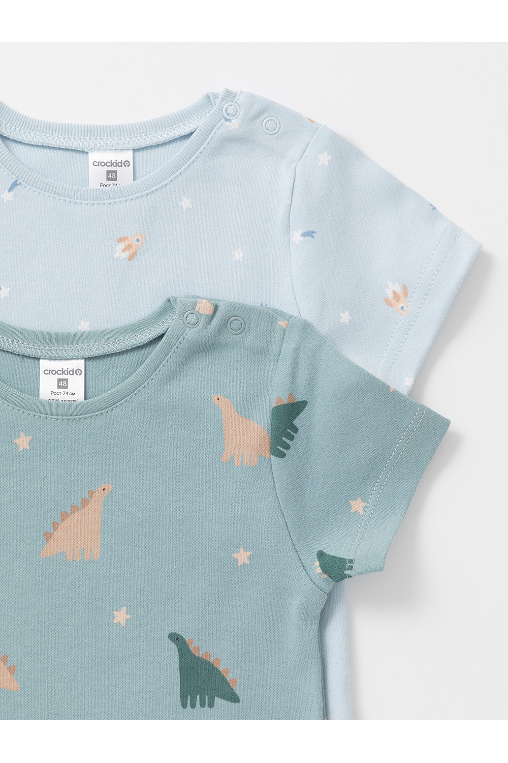 Футболки для мальчика из высококачественного трикотажа интерлок. В упаковке 2 штуки. Для удобства на плече застёжка на кнопки. Оригинальная набивка выполнена из стойких гипоаллергенных текстильных красителей. Все трикотажные полотна производятся в соответствии с нормами швейцарского сертификата ЭкоТекс.