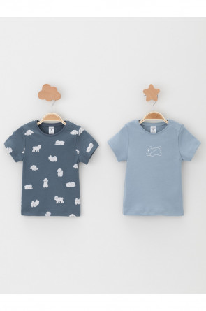 Футболки для мальчика из высококачественного трикотажа интерлок. В упаковке 2 штуки. Для удобства на плече застёжка на кнопки. Оригинальная набивка и принт выполнены из стойких гипоаллергенных текстильных красителей. Все трикотажные полотна производятся в соответствии с нормами швейцарского сертификата ЭкоТекс.