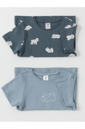 Футболки для мальчика из высококачественного трикотажа интерлок. В упаковке 2 штуки. Для удобства на плече застёжка на кнопки. Оригинальная набивка и принт выполнены из стойких гипоаллергенных текстильных красителей. Все трикотажные полотна производятся в соответствии с нормами швейцарского сертификата ЭкоТекс.