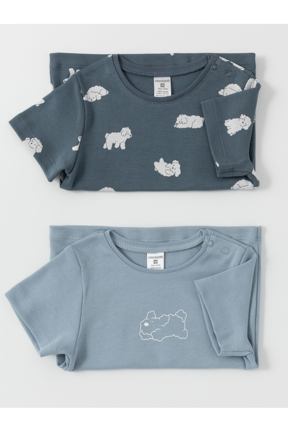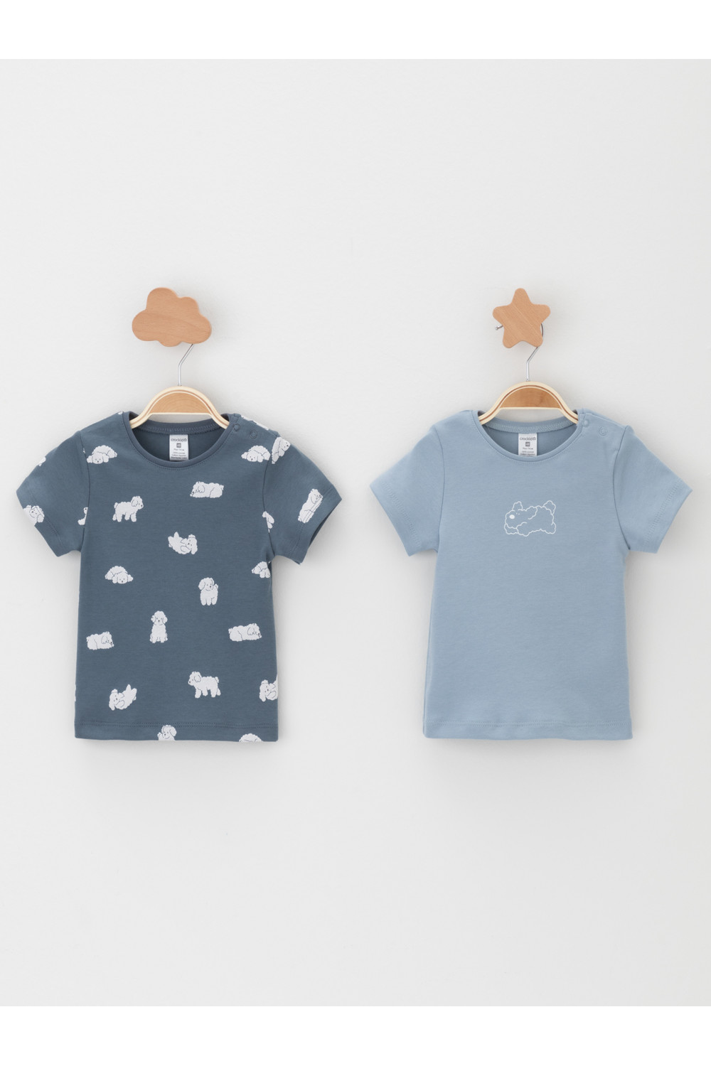 Футболки для мальчика из высококачественного трикотажа интерлок. В упаковке 2 штуки. Для удобства на плече застёжка на кнопки. Оригинальная набивка и принт выполнены из стойких гипоаллергенных текстильных красителей. Все трикотажные полотна производятся в соответствии с нормами швейцарского сертификата ЭкоТекс.