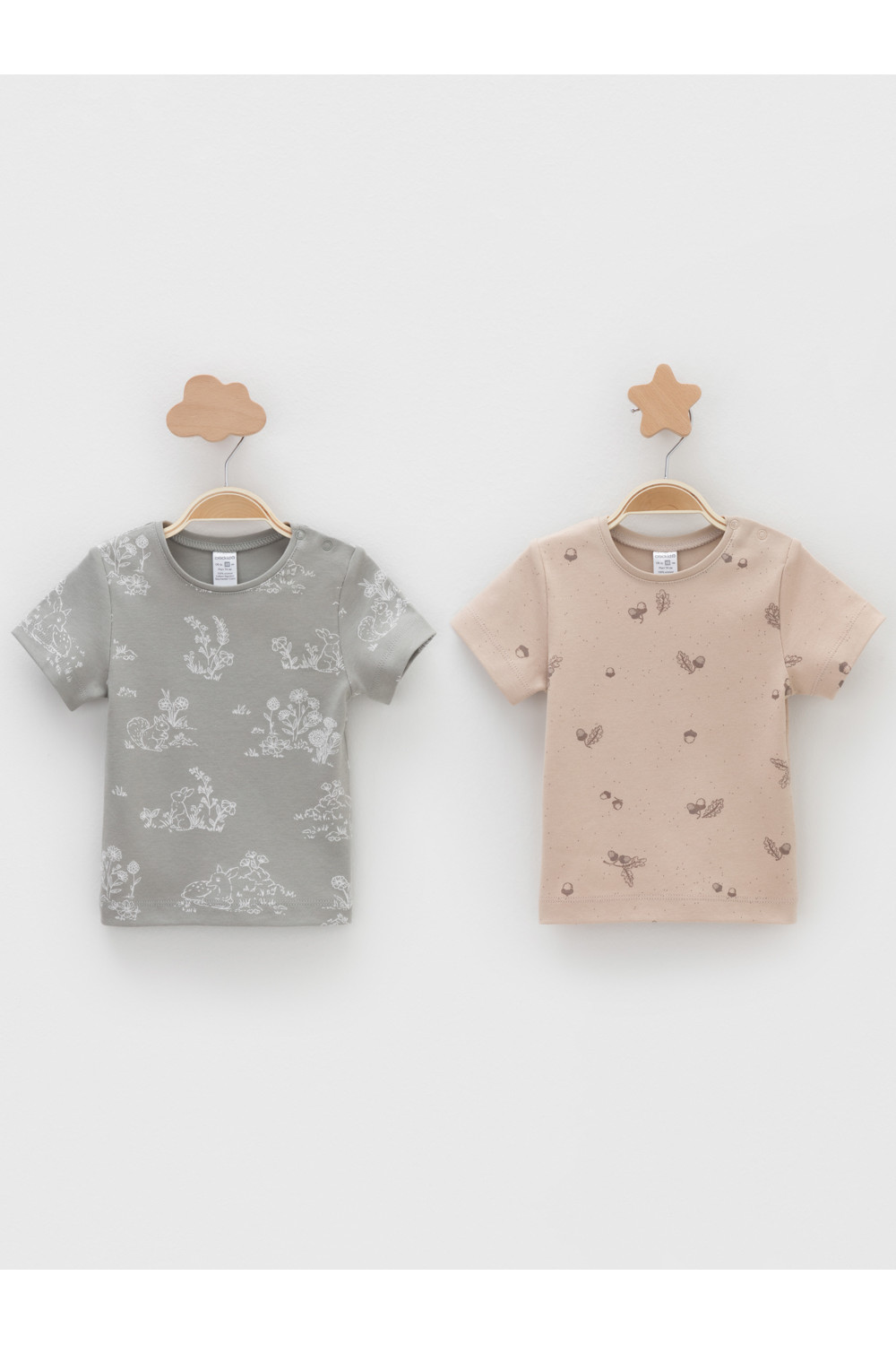 Футболки для девочки из высококачественного трикотажа, произведённого из натурального хлопка. В упаковке 2 штуки. Для удобства на плече застёжка на кнопки. Оригинальная набивка выполнена из стойких гипоаллергенных текстильных красителей. Все трикотажные полотна производятся в соответствии с нормами швейцарского сертификата ЭкоТекс.