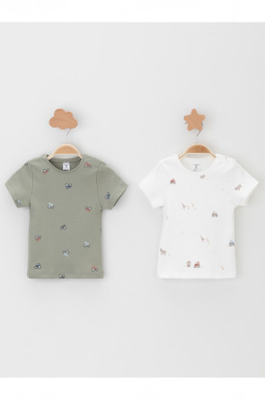 Футболки для мальчика из высококачественного трикотажа, произведённого из натурального хлопка. В упаковке 2 штуки. Для удобства на плече застёжка на кнопки. Оригинальная набивка и принт выполнены из стойких гипоаллергенных текстильных красителей. Все трикотажные полотна производятся в соответствии с нормами швейцарского сертификата ЭкоТекс.