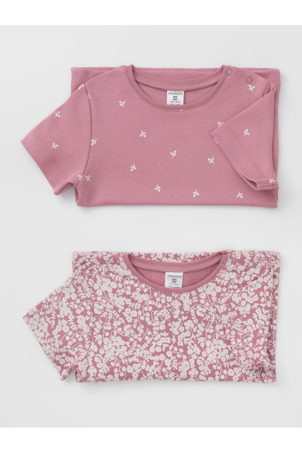 Футболки для девочки из высококачественного трикотажа, произведённого из натурального хлопка. В упаковке 2 штуки. Для удобства на плече застёжка на кнопки. Оригинальная набивка выполнена из стойких гипоаллергенных текстильных красителей. Все трикотажные полотна производятся в соответствии с нормами швейцарского сертификата ЭкоТекс.