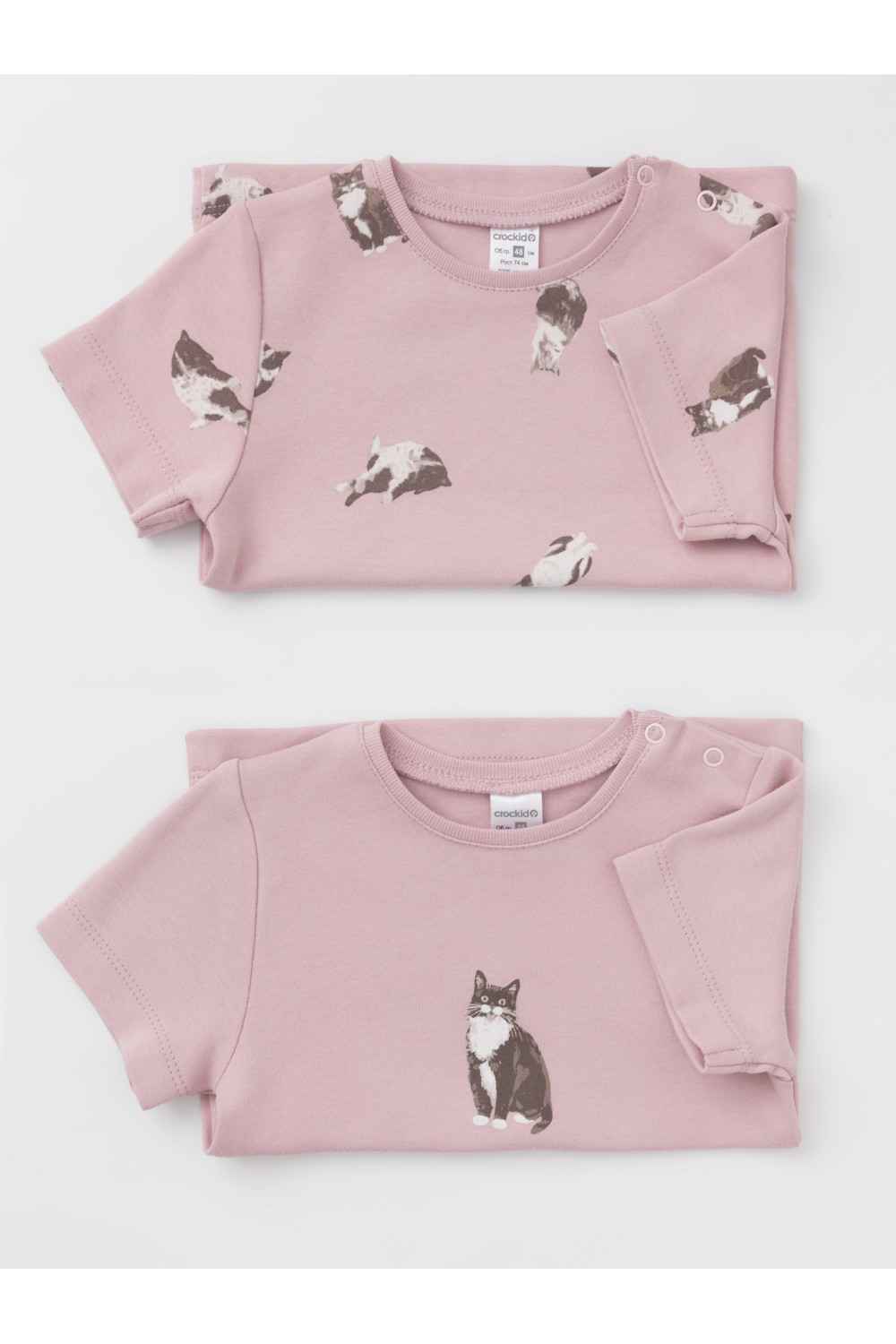 Футболки для девочки из высококачественного трикотажа интерлок. В упаковке 2 штуки. Для удобства на плече застёжка на кнопки. Оригинальная набивка и принт выполнены из стойких гипоаллергенных текстильных красителей. Все трикотажные полотна производятся в соответствии с нормами швейцарского сертификата ЭкоТекс.