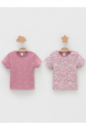 Футболки для девочки из высококачественного трикотажа, произведённого из натурального хлопка. В упаковке 2 штуки. Для удобства на плече застёжка на кнопки. Оригинальная набивка выполнена из стойких гипоаллергенных текстильных красителей. Все трикотажные полотна производятся в соответствии с нормами швейцарского сертификата ЭкоТекс.