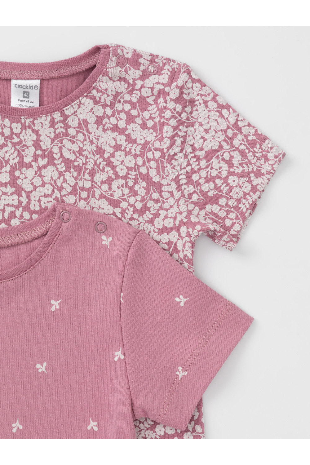 Футболки для девочки из высококачественного трикотажа, произведённого из натурального хлопка. В упаковке 2 штуки. Для удобства на плече застёжка на кнопки. Оригинальная набивка выполнена из стойких гипоаллергенных текстильных красителей. Все трикотажные полотна производятся в соответствии с нормами швейцарского сертификата ЭкоТекс.