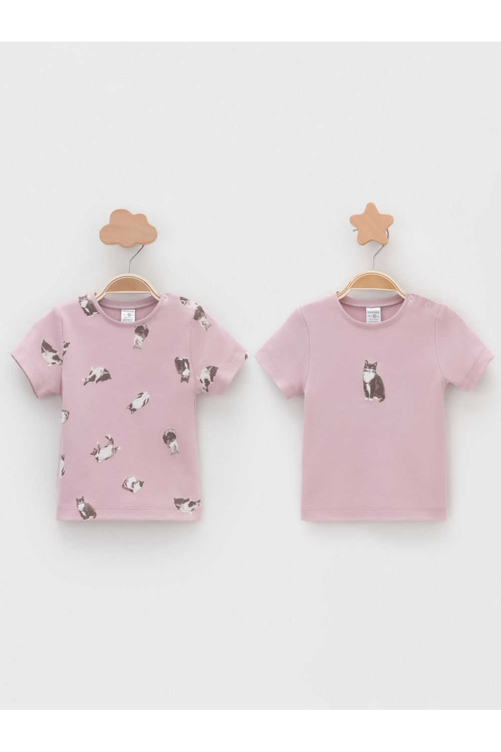 Футболки для девочки из высококачественного трикотажа интерлок. В упаковке 2 штуки. Для удобства на плече застёжка на кнопки. Оригинальная набивка и принт выполнены из стойких гипоаллергенных текстильных красителей. Все трикотажные полотна производятся в соответствии с нормами швейцарского сертификата ЭкоТекс.