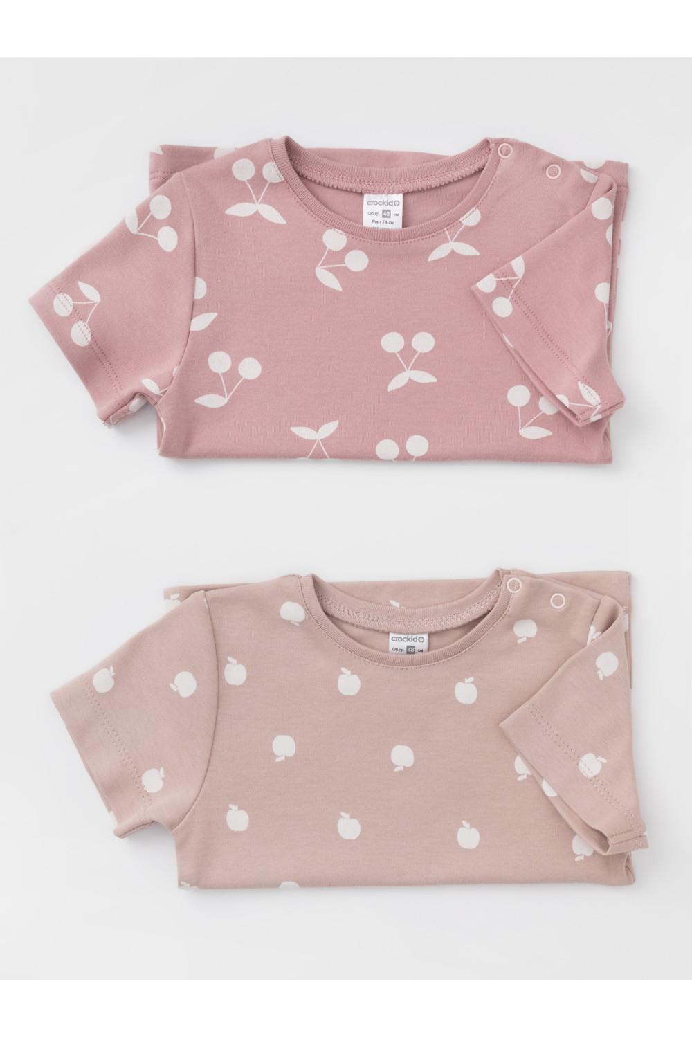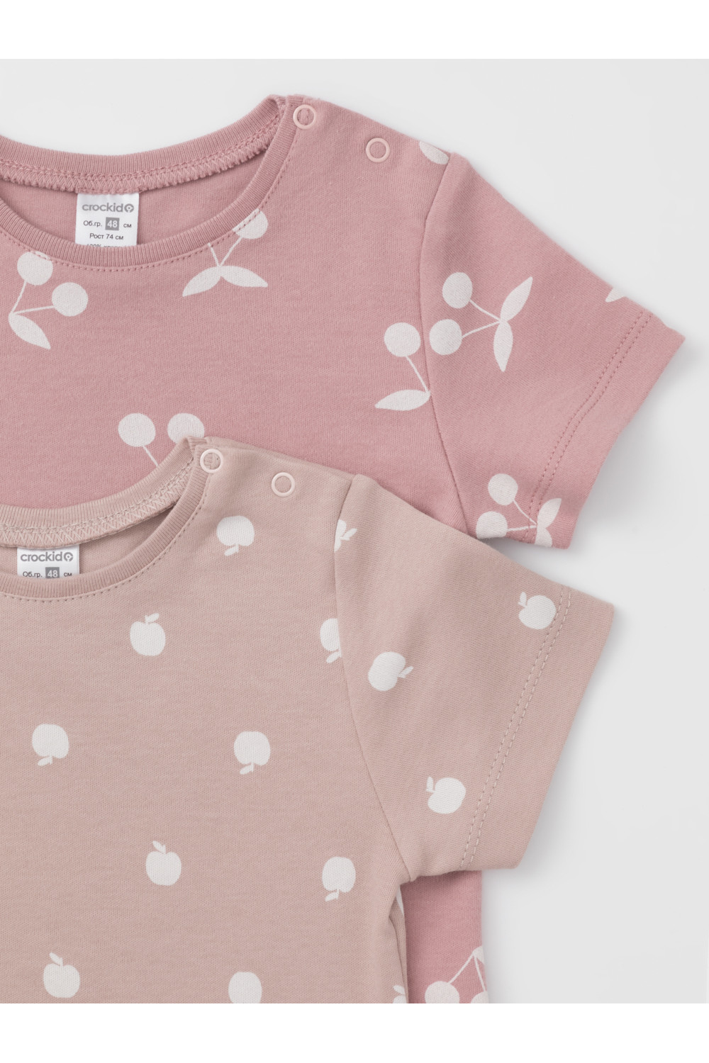 Футболки для девочки из высококачественного трикотажа интерлок. В упаковке 2 штуки. Для удобства на плече застёжка на кнопки. Оригинальная набивка выполнена из стойких гипоаллергенных текстильных красителей. Все трикотажные полотна производятся в соответствии с нормами швейцарского сертификата ЭкоТекс.