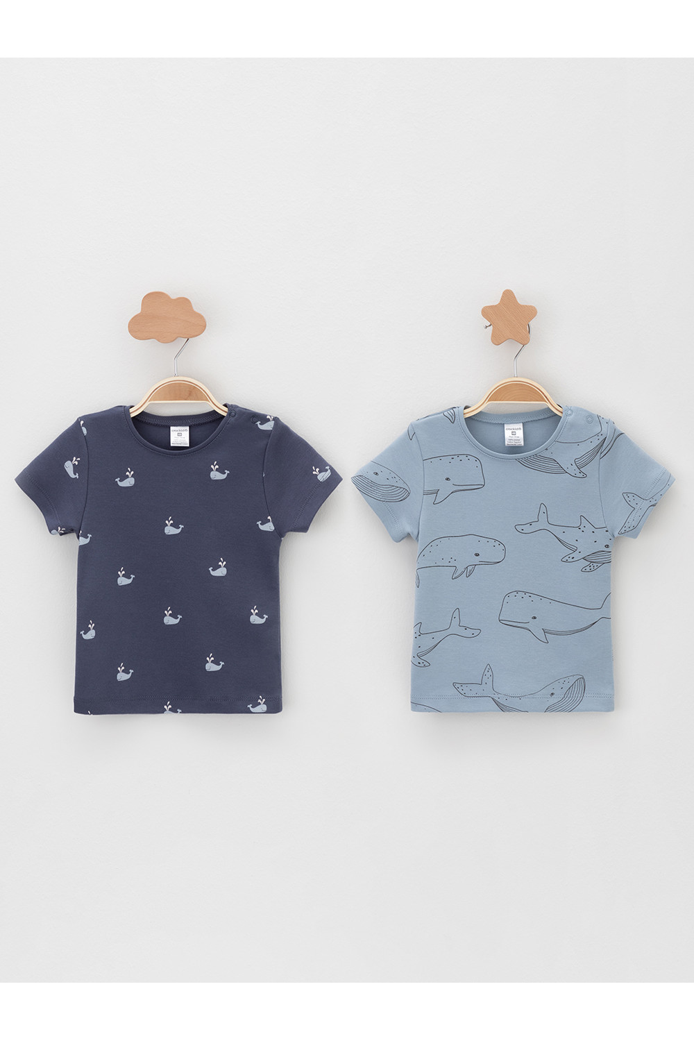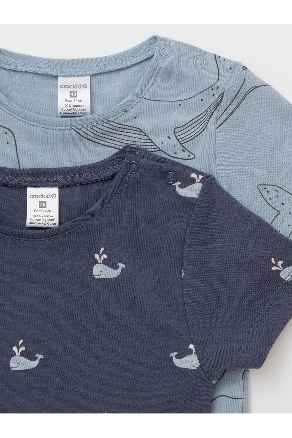 Футболки для мальчика из высококачественного трикотажа, произведённого из натурального хлопка. В упаковке 2 штуки. Для удобства на плече застёжка на кнопки. Оригинальная набивка выполнена из стойких гипоаллергенных текстильных красителей. Все трикотажные полотна производятся в соответствии с нормами Швейцарского сертификата ЭкоТекс.
