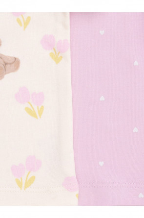 Футболки для девочки из высококачественного трикотажа, произведённого из натурального хлопка. В упаковке 2 штуки. Для удобства на плече застёжка на кнопки. Оригинальная набивка выполнена из стойких гипоаллергенных текстильных красителей. Все трикотажные полотна производятся в соответствии с нормами швейцарского сертификата ЭкоТекс.