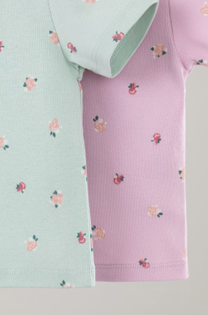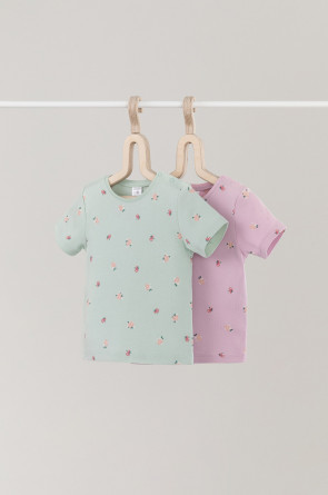 Футболки для девочки из высококачественного трикотажа, произведённого из натурального хлопка. В упаковке 2 штуки. Для удобства на плече застёжка на кнопки. Оригинальная набивка выполнена из стойких гипоаллергенных текстильных красителей. Все трикотажные полотна производятся в соответствии с нормами Швейцарского сертификата ЭкоТекс.