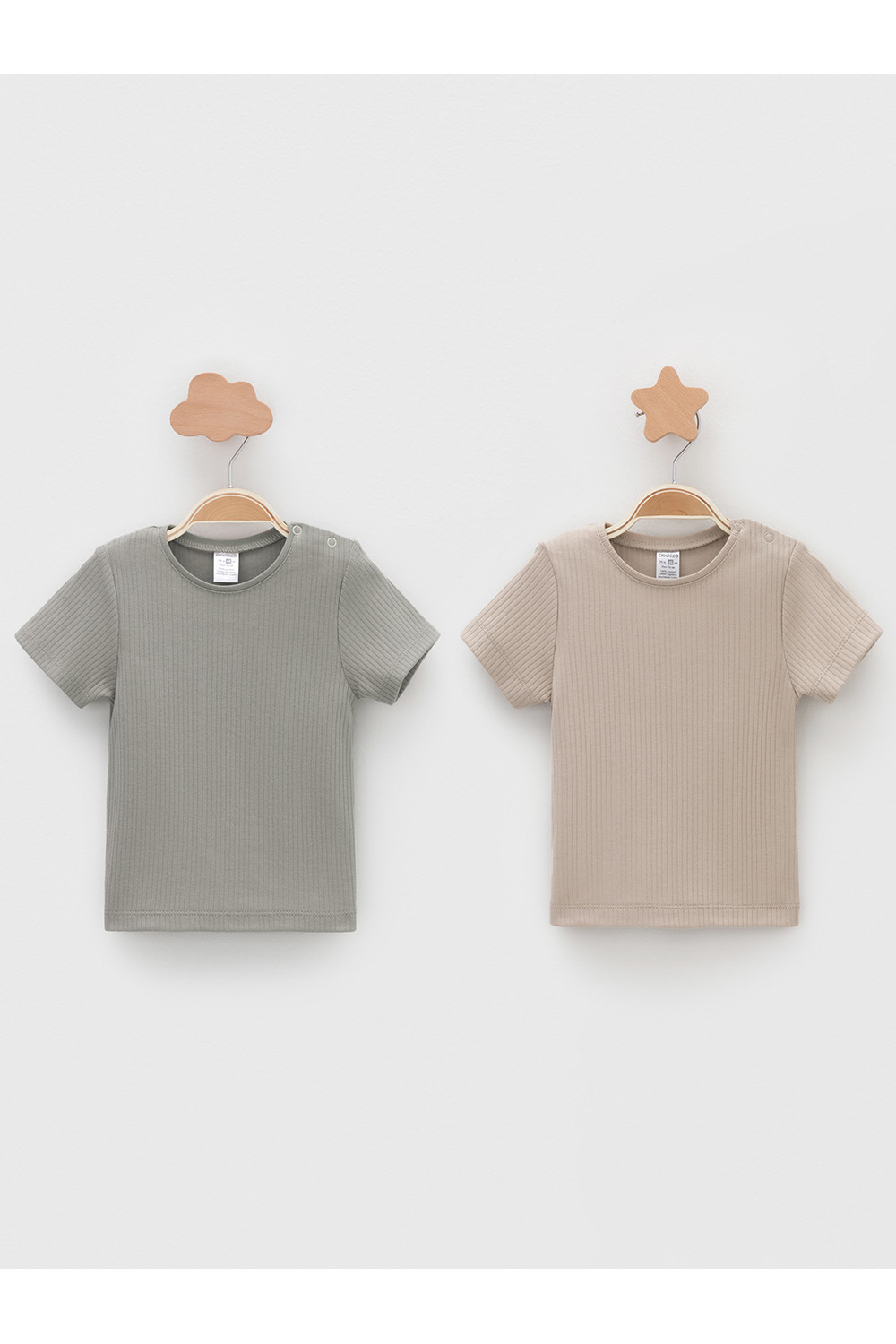 Футболки для мальчика из высококачественного трикотажа, произведённого из натурального хлопка. В упаковке 2 штуки. Для удобства на плече застёжка на кнопки. Все трикотажные полотна производятся в соответствии с нормами швейцарского сертификата ЭкоТекс.