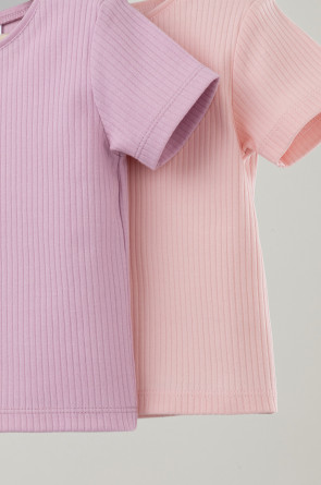 Футболки для девочки из высококачественного трикотажа, произведённого из натурального хлопка. В упаковке 2 штуки. Для удобства на плече застёжка на кнопки. Все трикотажные полотна производятся в соответствии с нормами Швейцарского сертификата ЭкоТекс.