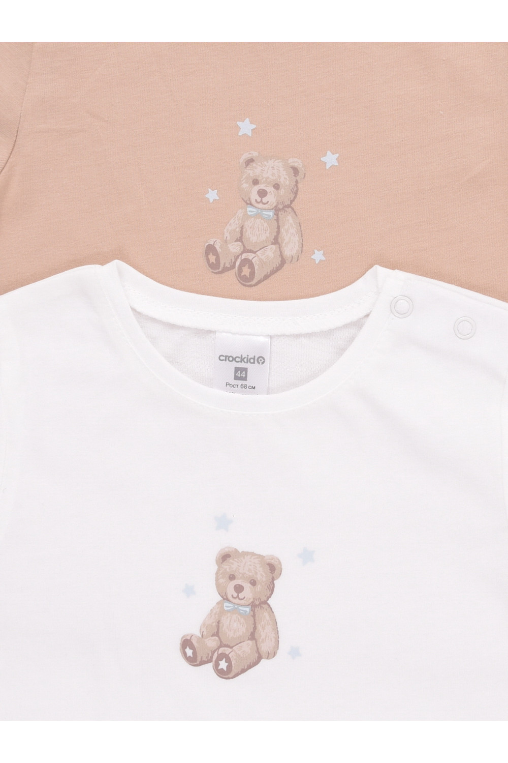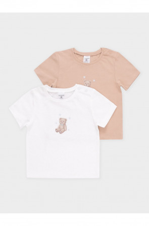 Футболки для мальчика из гладкого трикотажа супрем. В составе 100% натуральный хлопок высокого качества. В упаковке 2 штуки. Для удобства на плече застёжка на кнопки. Оригинальный принт выполнен из стойких гипоаллергенных текстильных красителей. Все трикотажные полотна производятся в соответствии с нормами швейцарского сертификата ЭкоТекс.