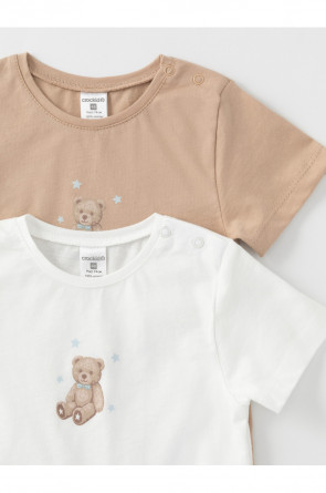 Футболки для мальчика из гладкого трикотажа супрем. В составе 100% натуральный хлопок высокого качества. В упаковке 2 штуки. Для удобства на плече застёжка на кнопки. Оригинальный принт выполнен из стойких гипоаллергенных текстильных красителей. Все трикотажные полотна производятся в соответствии с нормами швейцарского сертификата ЭкоТекс.