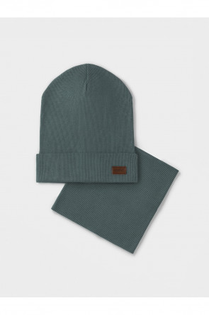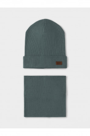 Комплект для мальчика: шапка и снуд. Изготовлен из хлопкового трикотажа в рубчик с добавлением спандекса. Комфортно прилегает, обеспечивая защиту от холода и хороший теплообмен. Изделия хорошо тянутся, после многократных стирок сохраняют цвет и форму.