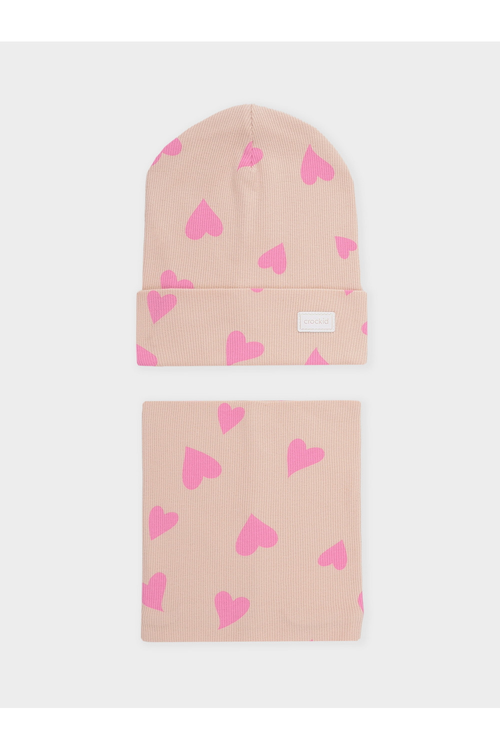Комплект для девочки: шапка и снуд. Изготовлен из хлопкового трикотажа в рубчик с добавлением спандекса. Комфортно прилегает, обеспечивая защиту от холода и хороший теплообмен. Изделия хорошо тянутся, после многократных стирок сохраняют цвет и форму.