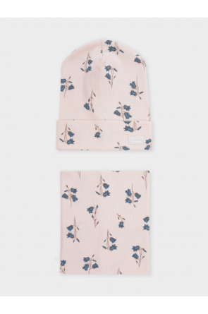 Комплект для девочки: шапка и снуд. Изготовлен из хлопкового трикотажа в рубчик с добавлением спандекса. Комфортно прилегает, обеспечивая защиту от холода и хороший теплообмен. Изделия хорошо тянутся, после многократных стирок сохраняют цвет и форму.