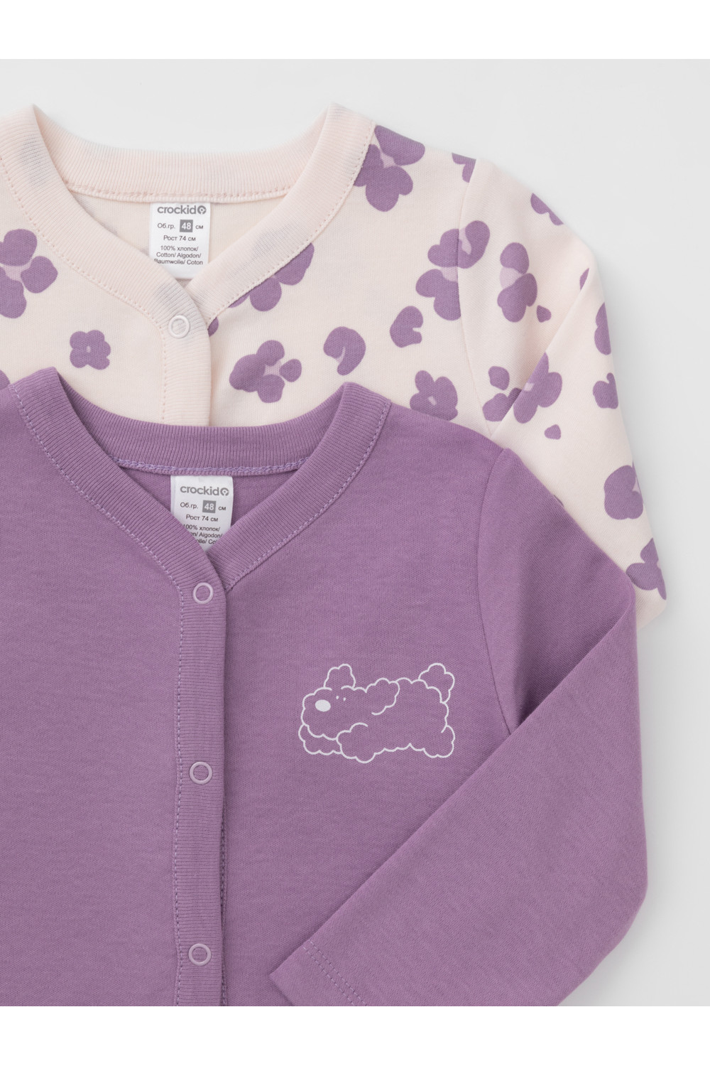 Кофточки для новорождённых из мягкого эластичного трикотажа интерлок, произведённого из натурального хлопка. В упаковке 2 штуки. Застёгиваются спереди на кнопки. В размере 56 на рукавах предусмотрены отвороты, швы выполнены наружу. Оригинальная набивка и принт выполнены из стойких гипоаллергенных текстильных красителей. Все трикотажные полотна производятся в соответствии с нормами Швейцарского сертификата ЭкоТекс.