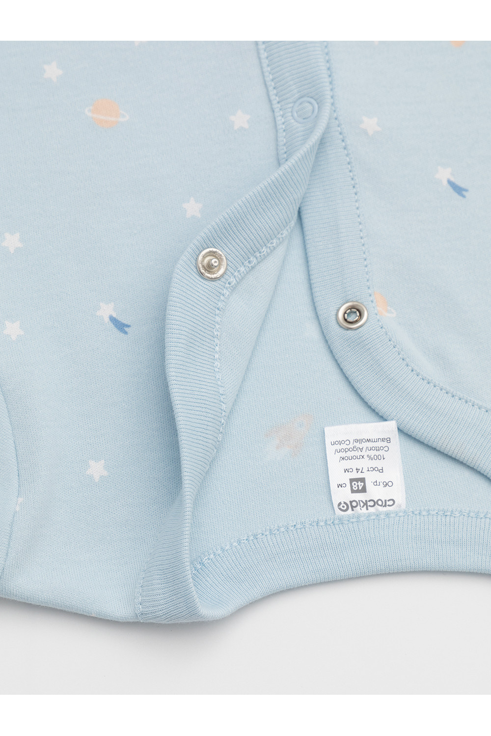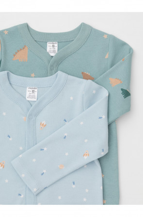 Кофточки для новорождённых из мягкого эластичного трикотажа интерлок, произведённого из натурального хлопка. В упаковке 2 штуки. Застёгиваются спереди на кнопки. В размере 56 на рукавах предусмотрены отвороты, швы выполнены наружу. Оригинальная набивка выполнена из стойких гипоаллергенных текстильных красителей. Все трикотажные полотна производятся в соответствии с нормами Швейцарского сертификата ЭкоТекс.