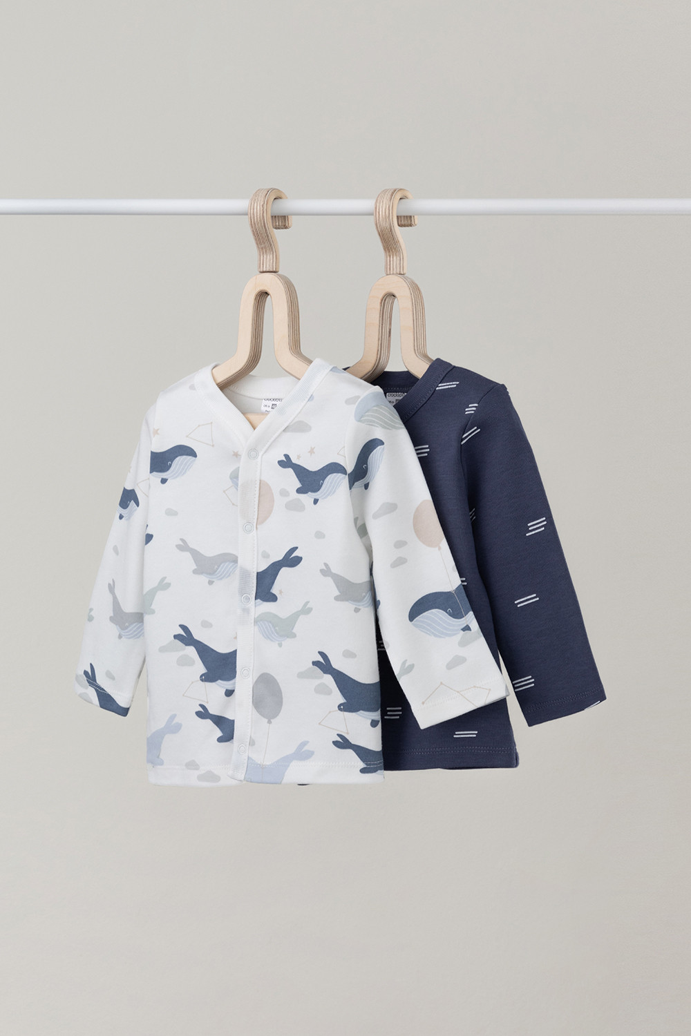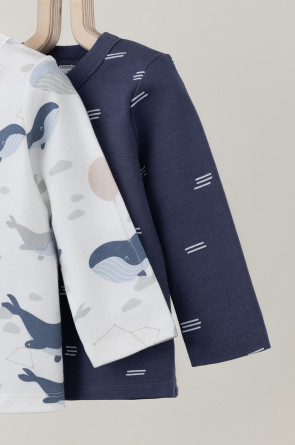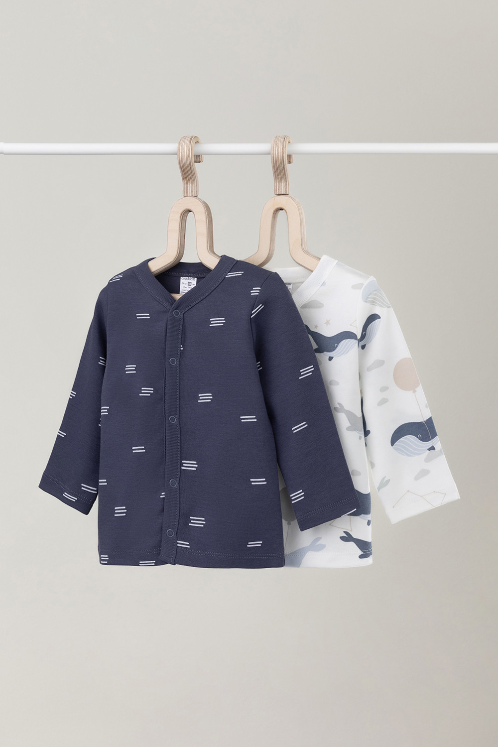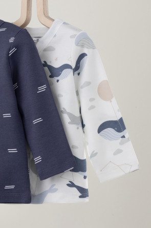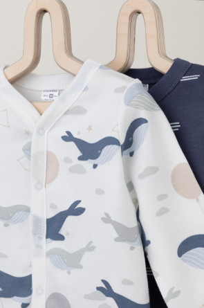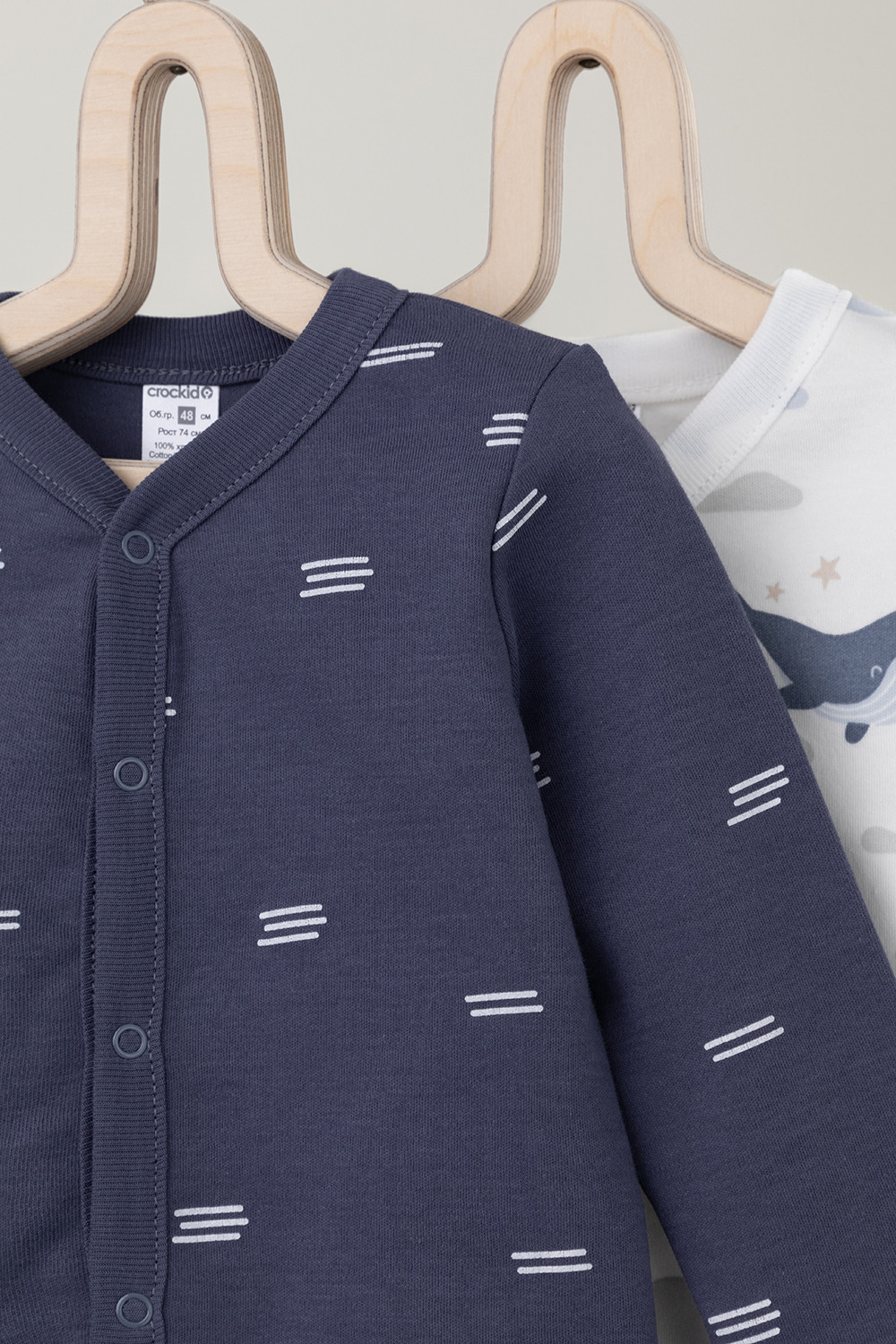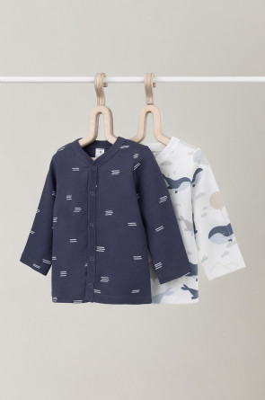Кофточки для новорождённых из мягкого эластичного трикотажа интерлок, произведённого из натурального хлопка. В упаковке 2 штуки. Застёгиваются спереди на кнопки. В размере 56 на рукавах предусмотрены отвороты, швы выполнены наружу. Оригинальная набивка выполнена из стойких гипоаллергенных текстильных красителей. Все трикотажные полотна производятся в соответствии с нормами Швейцарского сертификата ЭкоТекс.
