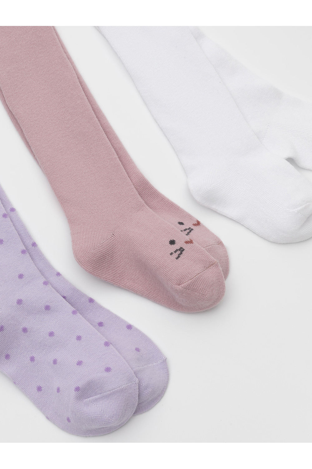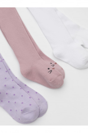 Колготки для девочки с эластичной резинкой в поясе и формованной стопой. Украшены рисунком. В комплекте 3 пары. Изделия сохраняют форму и стойкий цвет после многочисленных стирок.
