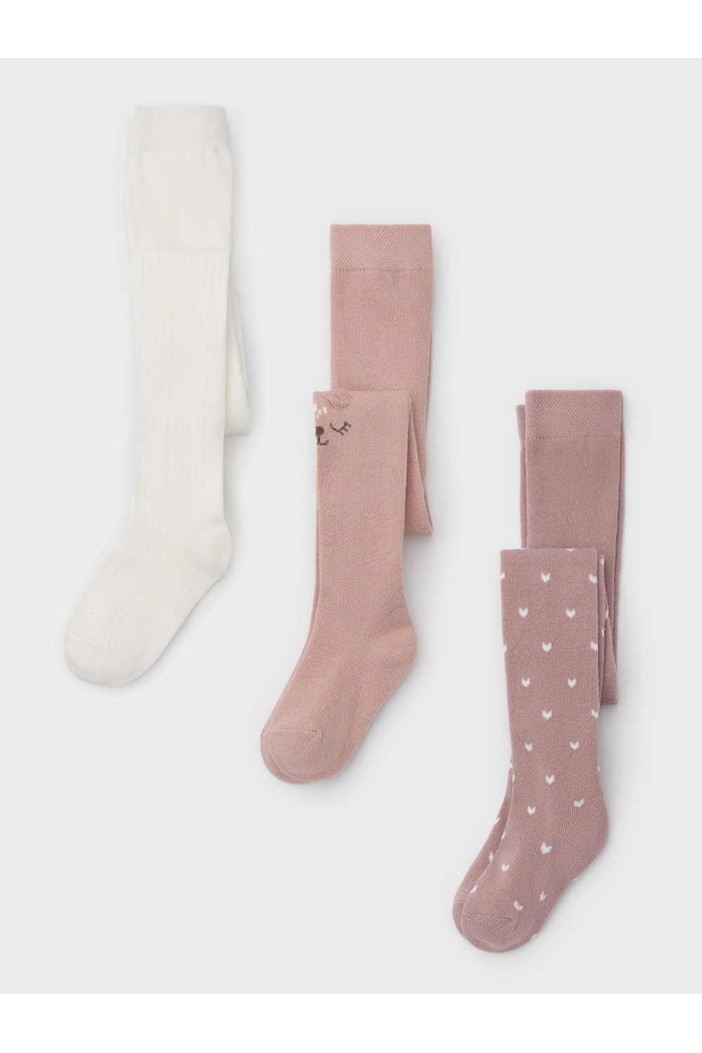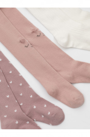 Колготки для девочки с эластичной резинкой в поясе и формованной стопой. Украшены рисунком. В комплекте 3 пары. Изделия сохраняют форму и стойкий цвет после многочисленных стирок.