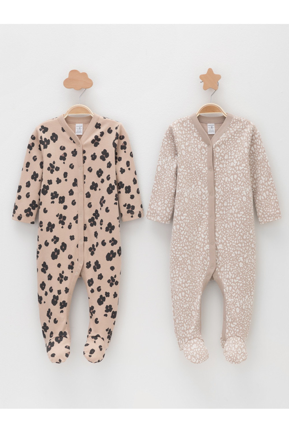 Комбинезоны для новорождённых из мягкого эластичного трикотажа интерлок, произведённого из натурального хлопка. В упаковке 2 штуки. Застёгиваются спереди на кнопки. В размере 56 на рукавах предусмотрены антицарапки, швы выполнены наружу. Оригинальная набивка выполнена из стойких гипоаллергенных текстильных красителей. Все трикотажные полотна производятся в соответствии с нормами швейцарского сертификата ЭкоТекс.