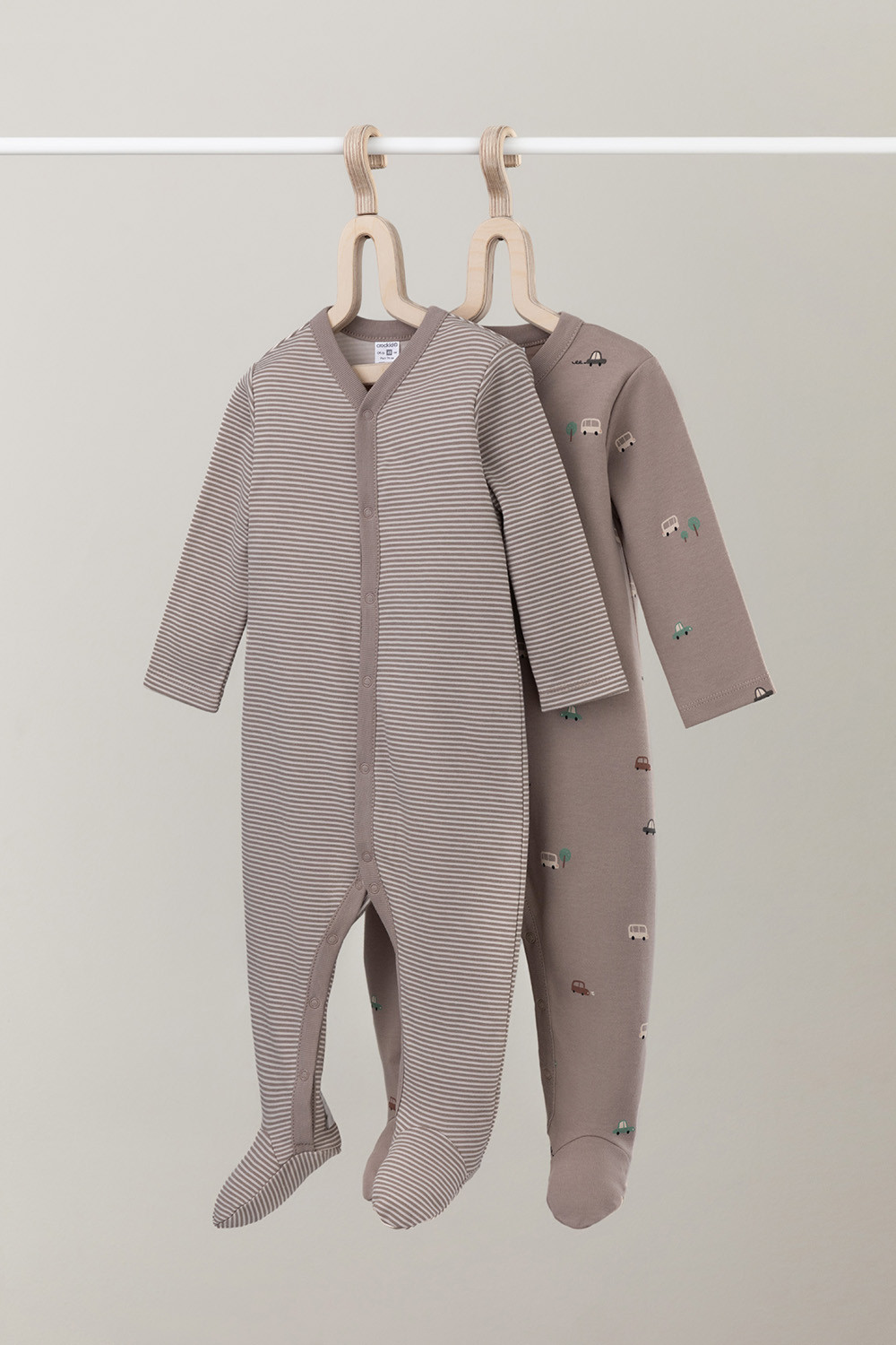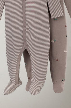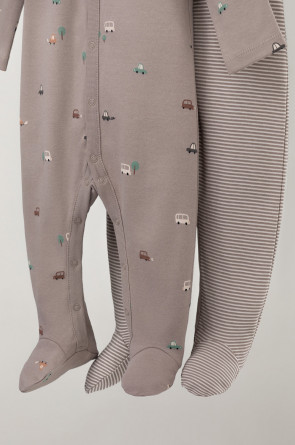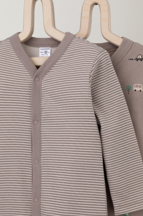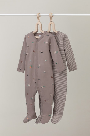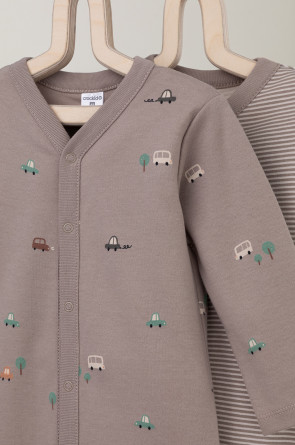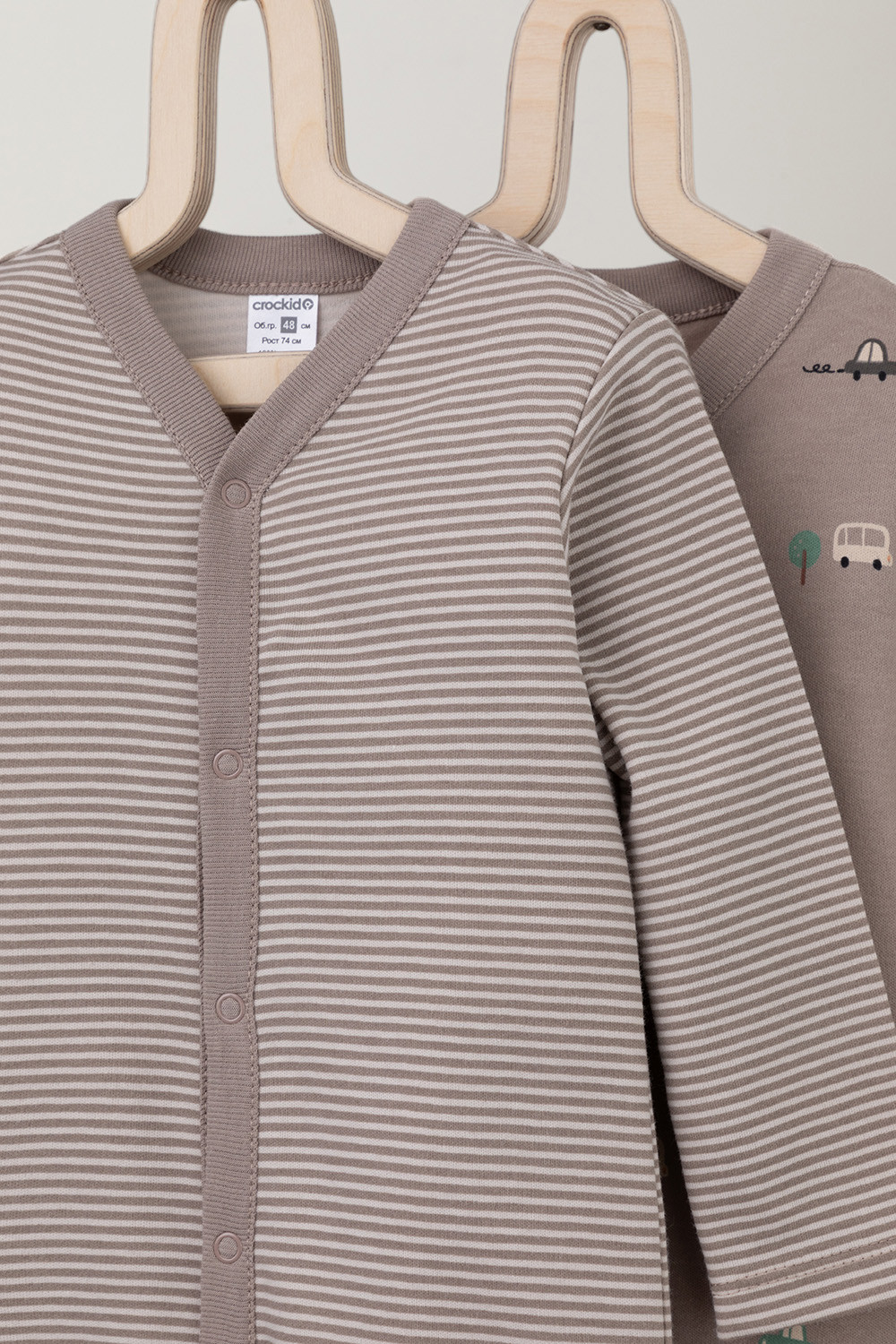 Комбинезоны для новорождённых из мягкого эластичного трикотажа интерлок, произведённого из натурального хлопка. В упаковке 2 штуки. Застёгиваются спереди на кнопки. В размере 56 на рукавах предусмотрены антицарапки, швы выполнены наружу. Оригинальная набивка выполнена из стойких гипоаллергенных текстильных красителей. Все трикотажные полотна производятся в соответствии с нормами Швейцарского сертификата ЭкоТекс.