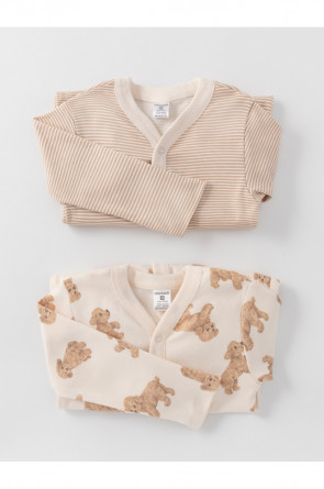 Комбинезоны для новорождённых из мягкого эластичного трикотажа интерлок, произведённого из натурального хлопка. В упаковке 2 штуки. Застёгиваются спереди на кнопки. В размере 56 на рукавах предусмотрены антицарапки, швы выполнены наружу. Оригинальная набивка выполнена из стойких гипоаллергенных текстильных красителей. Все трикотажные полотна производятся в соответствии с нормами швейцарского сертификата ЭкоТекс.