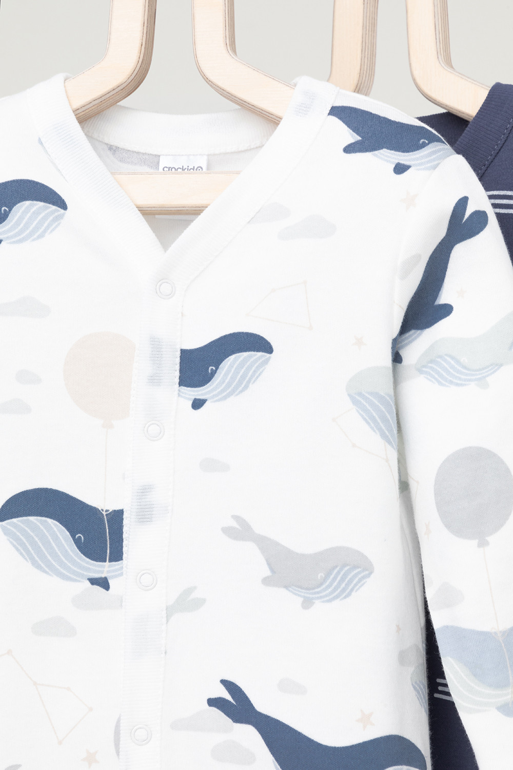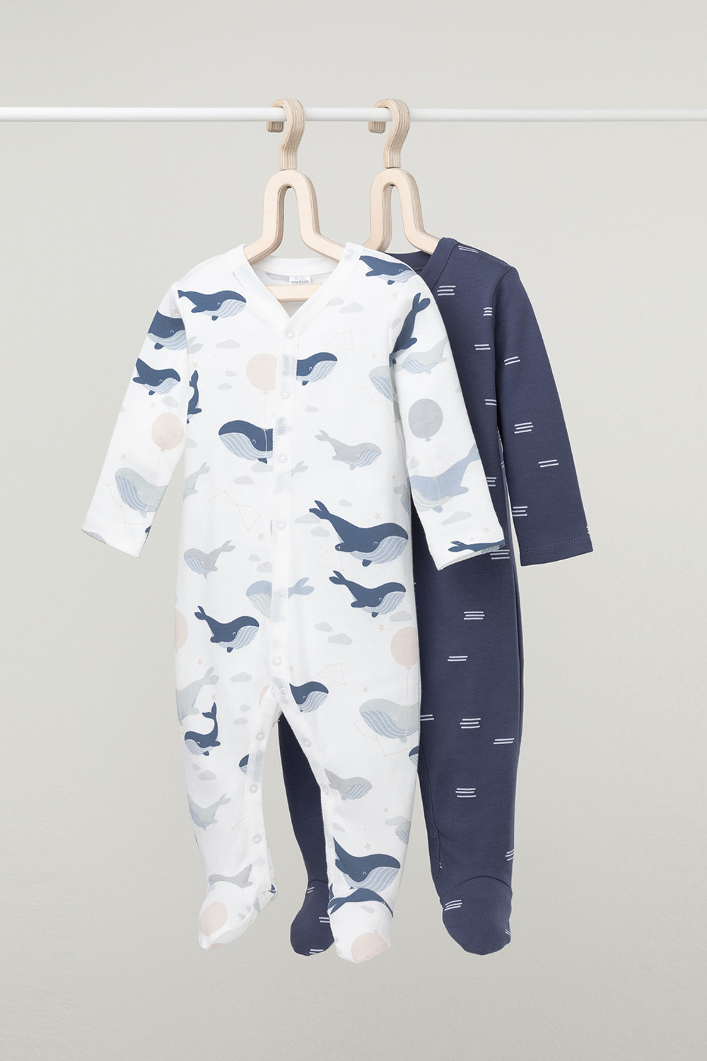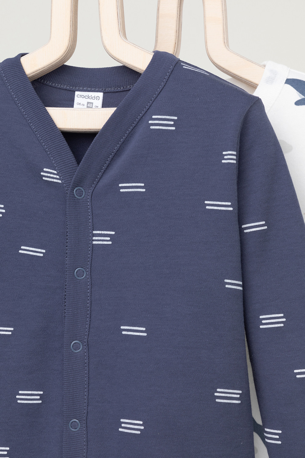 Комбинезоны для новорождённых из мягкого эластичного трикотажа интерлок, произведённого из натурального хлопка. В упаковке 2 штуки. Застёгиваются спереди на кнопки. В размере 56 на рукавах предусмотрены антицарапки, швы выполнены наружу. Оригинальная набивка выполнена из стойких гипоаллергенных текстильных красителей. Все трикотажные полотна производятся в соответствии с нормами Швейцарского сертификата ЭкоТекс.