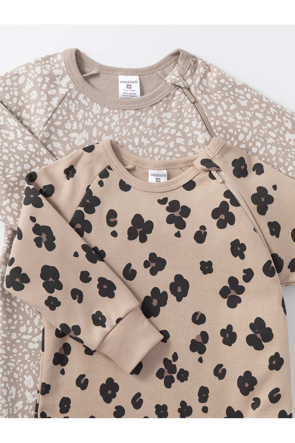 Комбинезоны для новорождённых из мягкого эластичного трикотажа интерлок, произведённого из натурального хлопка. В упаковке 2 штуки. Застёгиваются сбоку на молнию с мягкой защитой шеи и подбородка. Длинные рукава-реглан оканчиваются манжетами. Оригинальная набивка выполнена из стойких гипоаллергенных текстильных красителей. Все трикотажные полотна производятся в соответствии с нормами швейцарского сертификата ЭкоТекс.