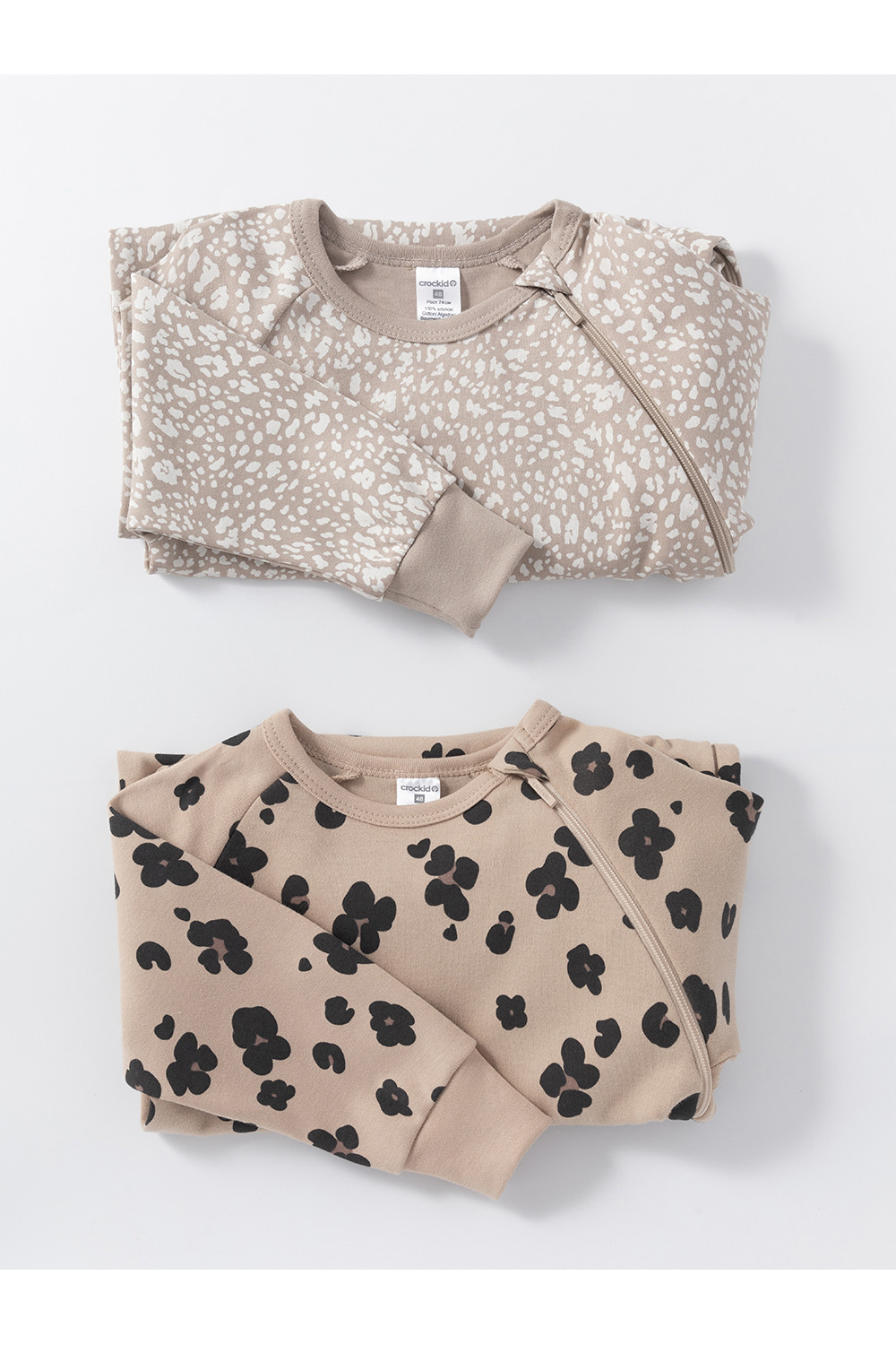 Комбинезоны для новорождённых из мягкого эластичного трикотажа интерлок, произведённого из натурального хлопка. В упаковке 2 штуки. Застёгиваются сбоку на молнию с мягкой защитой шеи и подбородка. Длинные рукава-реглан оканчиваются манжетами. Оригинальная набивка выполнена из стойких гипоаллергенных текстильных красителей. Все трикотажные полотна производятся в соответствии с нормами швейцарского сертификата ЭкоТекс.