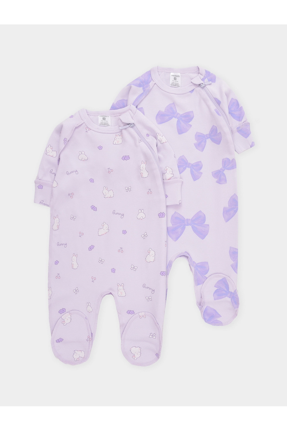 Комбинезоны для новорождённых из мягкого эластичного трикотажа интерлок, произведённого из натурального хлопка. В упаковке 2 штуки. Застёгиваются сбоку на молнию с мягкой защитой шеи и подбородка. Длинные рукава-реглан оканчиваются манжетами. Оригинальная набивка выполнена из стойких гипоаллергенных текстильных красителей. Все трикотажные полотна производятся в соответствии с нормами швейцарского сертификата ЭкоТекс.