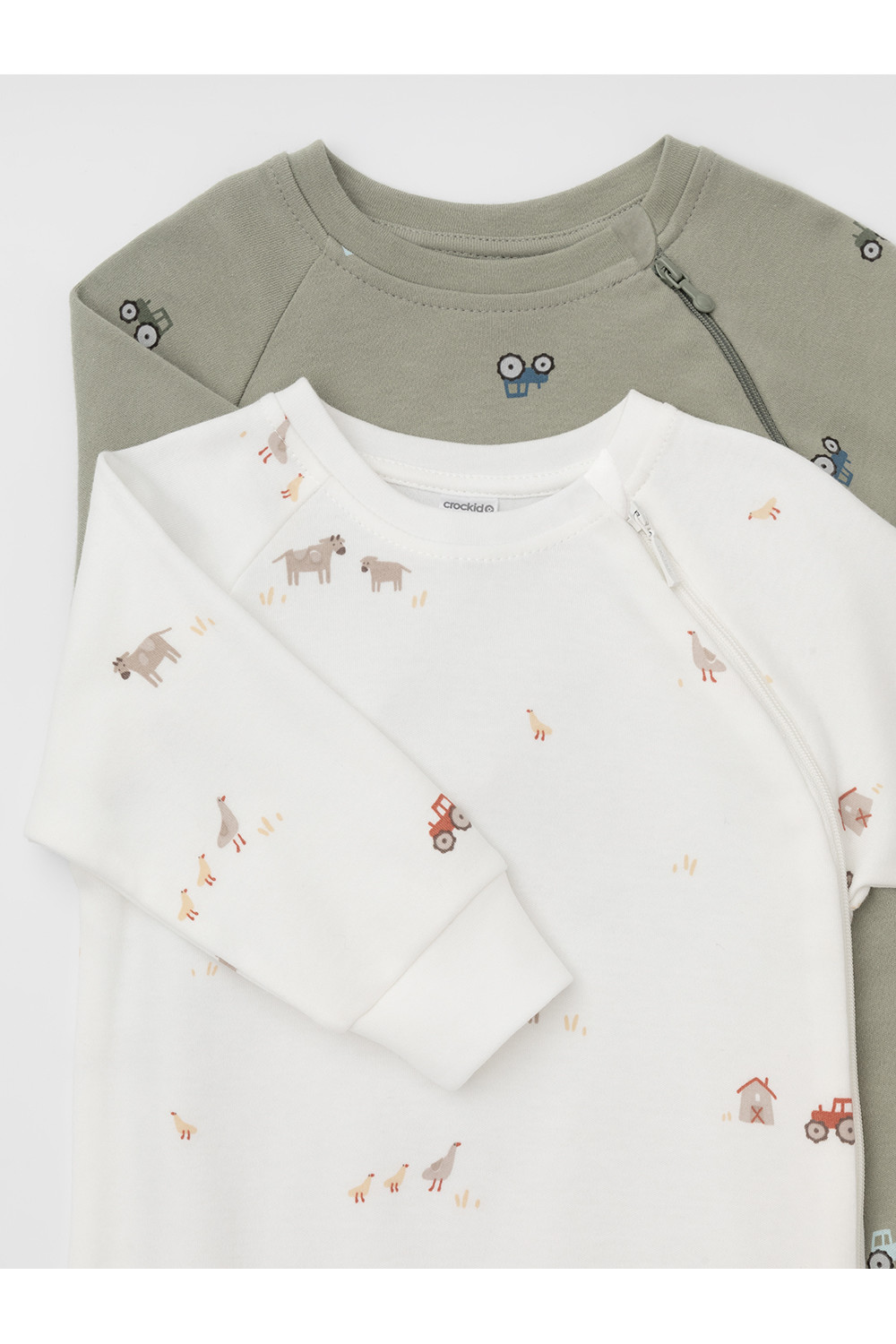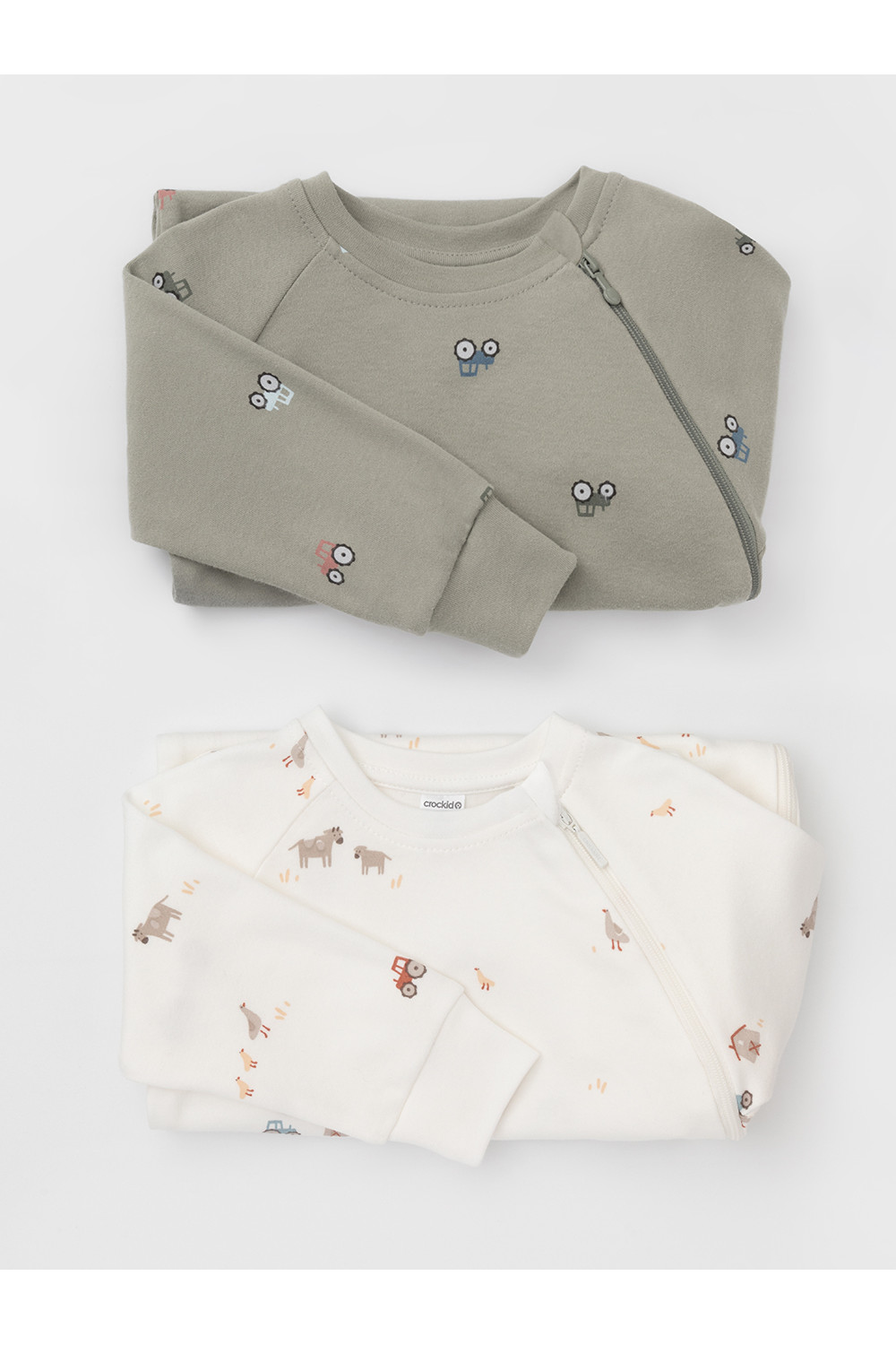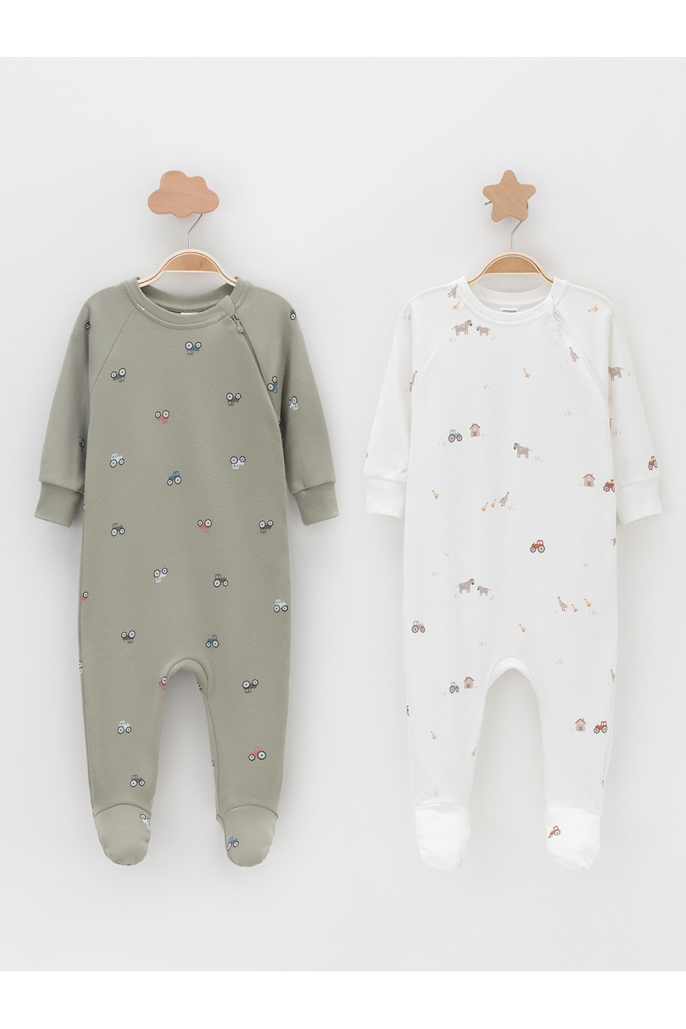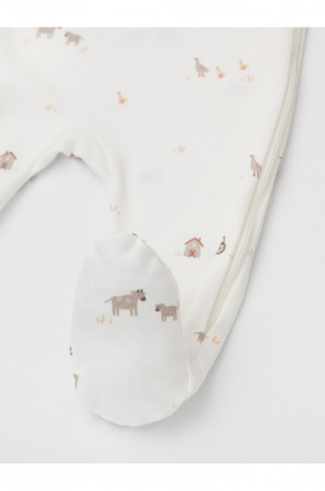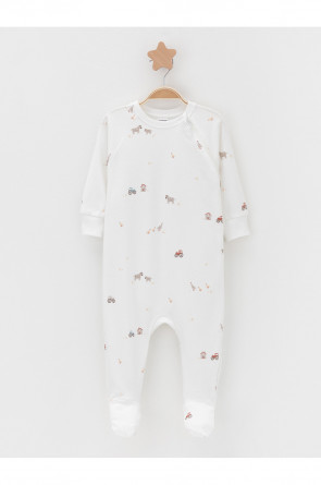 Комбинезоны для новорождённых из мягкого эластичного трикотажа интерлок, произведённого из натурального хлопка. В упаковке 2 штуки. Застёгиваются сбоку на молнию с мягкой защитой шеи и подбородка. Длинные рукава-реглан оканчиваются манжетами. Оригинальная набивка выполнена из стойких гипоаллергенных текстильных красителей. Все трикотажные полотна производятся в соответствии с нормами швейцарского сертификата ЭкоТекс.