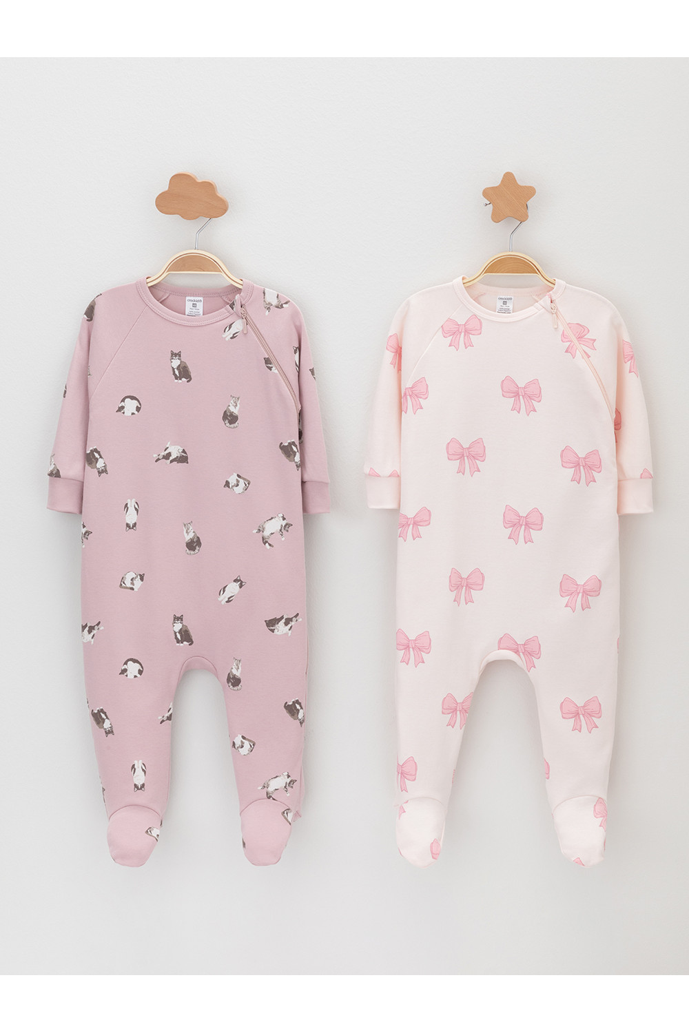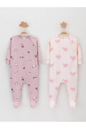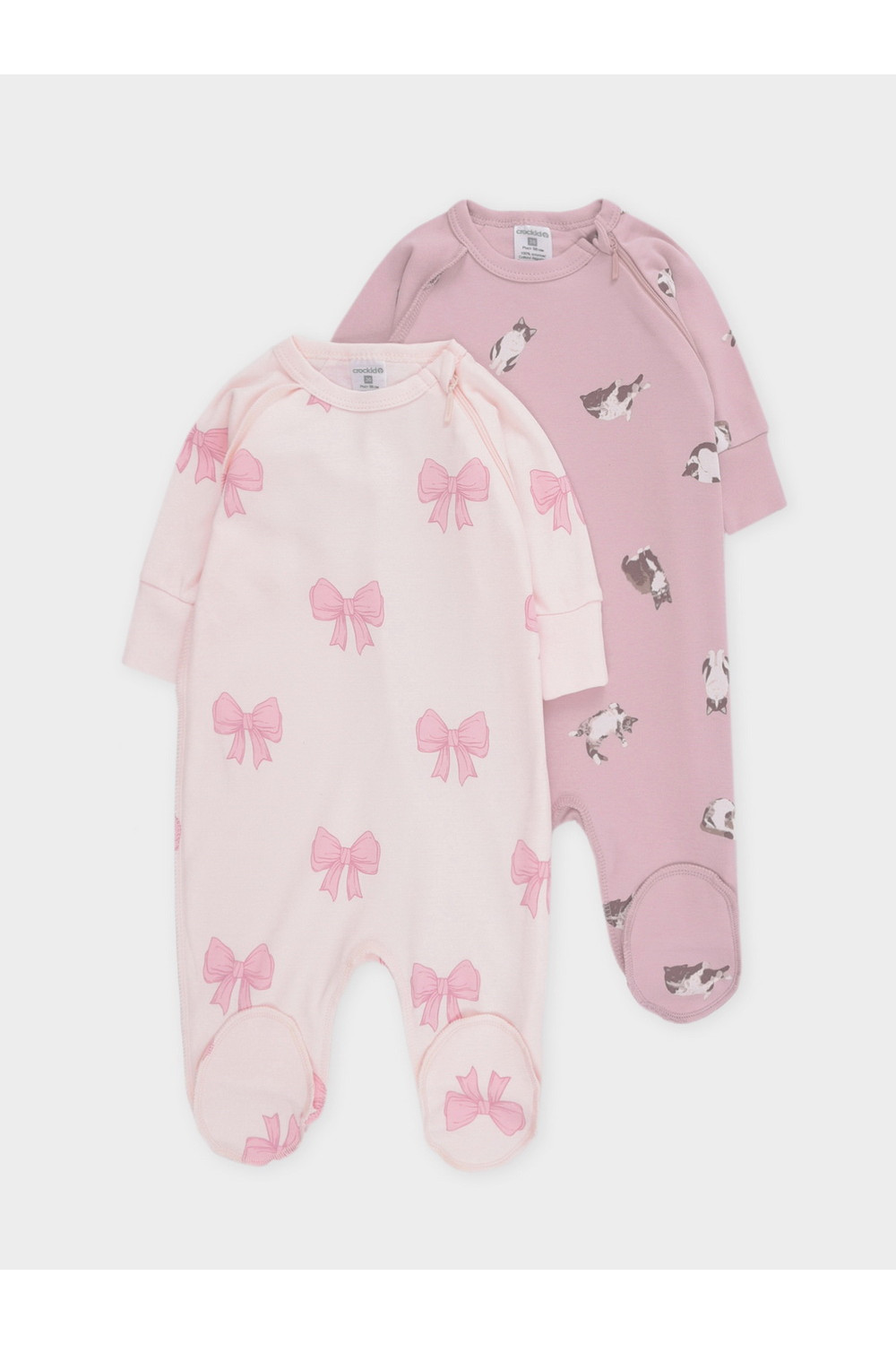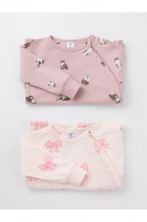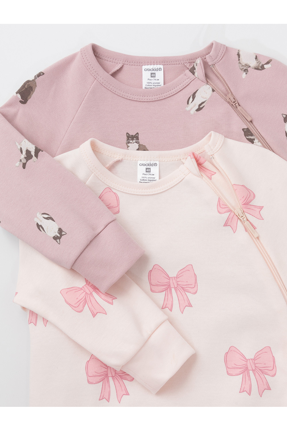 Комбинезоны для новорождённых из мягкого эластичного трикотажа интерлок, произведённого из натурального хлопка. В упаковке 2 штуки. Застёгиваются сбоку на молнию с мягкой защитой шеи и подбородка. Длинные рукава-реглан оканчиваются манжетами. Оригинальная набивка выполнена из стойких гипоаллергенных текстильных красителей. Все трикотажные полотна производятся в соответствии с нормами швейцарского сертификата ЭкоТекс.