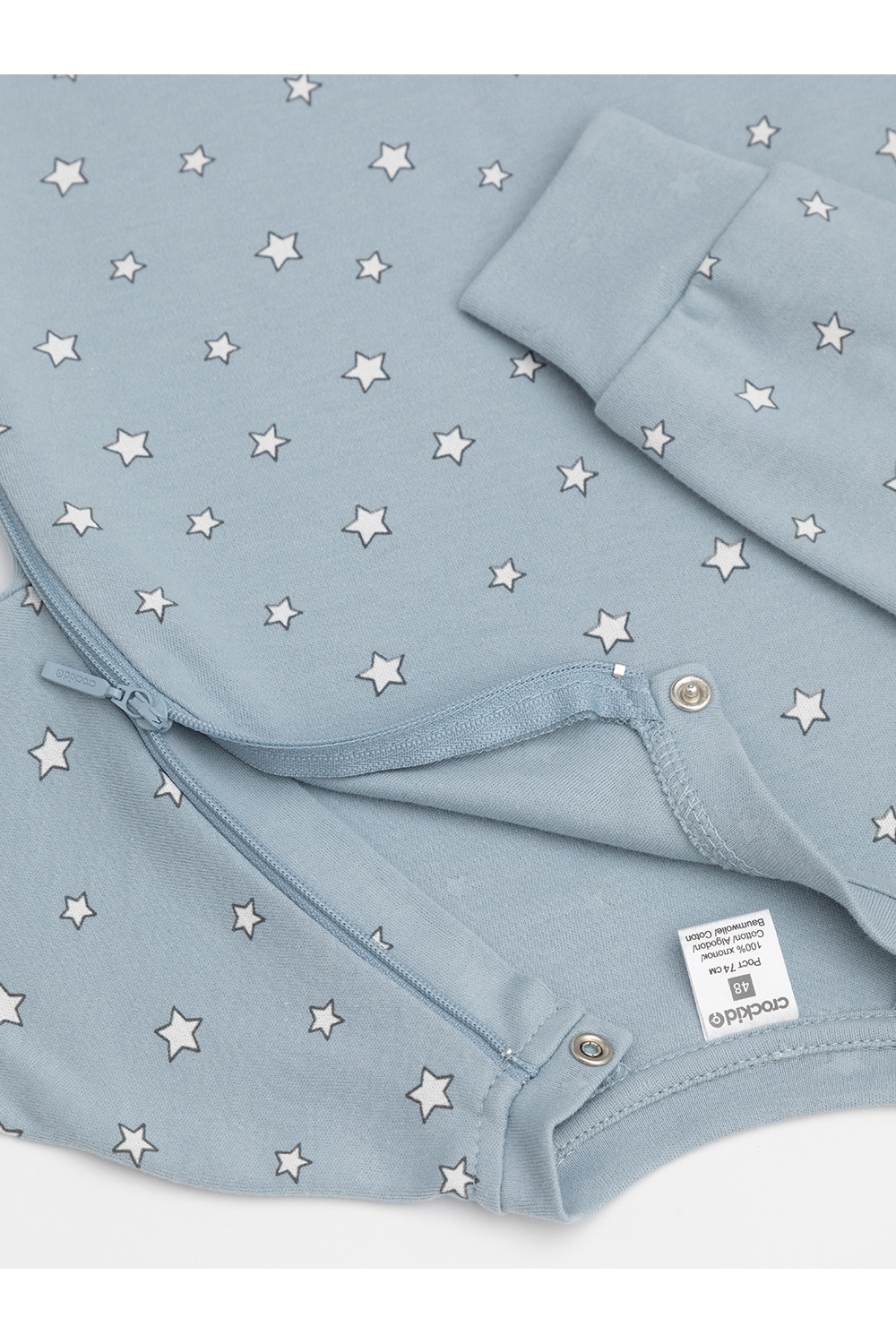 Комбинезоны для новорождённых из мягкого эластичного трикотажа интерлок, произведённого из натурального хлопка. В упаковке 2 штуки. Застёгиваются сбоку на молнию с мягкой защитой шеи и подбородка. Длинные рукава-реглан оканчиваются манжетами. Оригинальная набивка выполнена из стойких гипоаллергенных текстильных красителей. Все трикотажные полотна производятся в соответствии с нормами швейцарского сертификата ЭкоТекс.