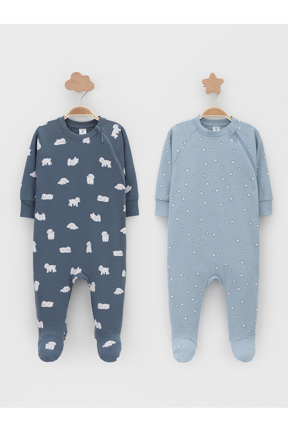 Комбинезоны для новорождённых из мягкого эластичного трикотажа интерлок, произведённого из натурального хлопка. В упаковке 2 штуки. Застёгиваются сбоку на молнию с мягкой защитой шеи и подбородка. Длинные рукава-реглан оканчиваются манжетами. Оригинальная набивка выполнена из стойких гипоаллергенных текстильных красителей. Все трикотажные полотна производятся в соответствии с нормами швейцарского сертификата ЭкоТекс.