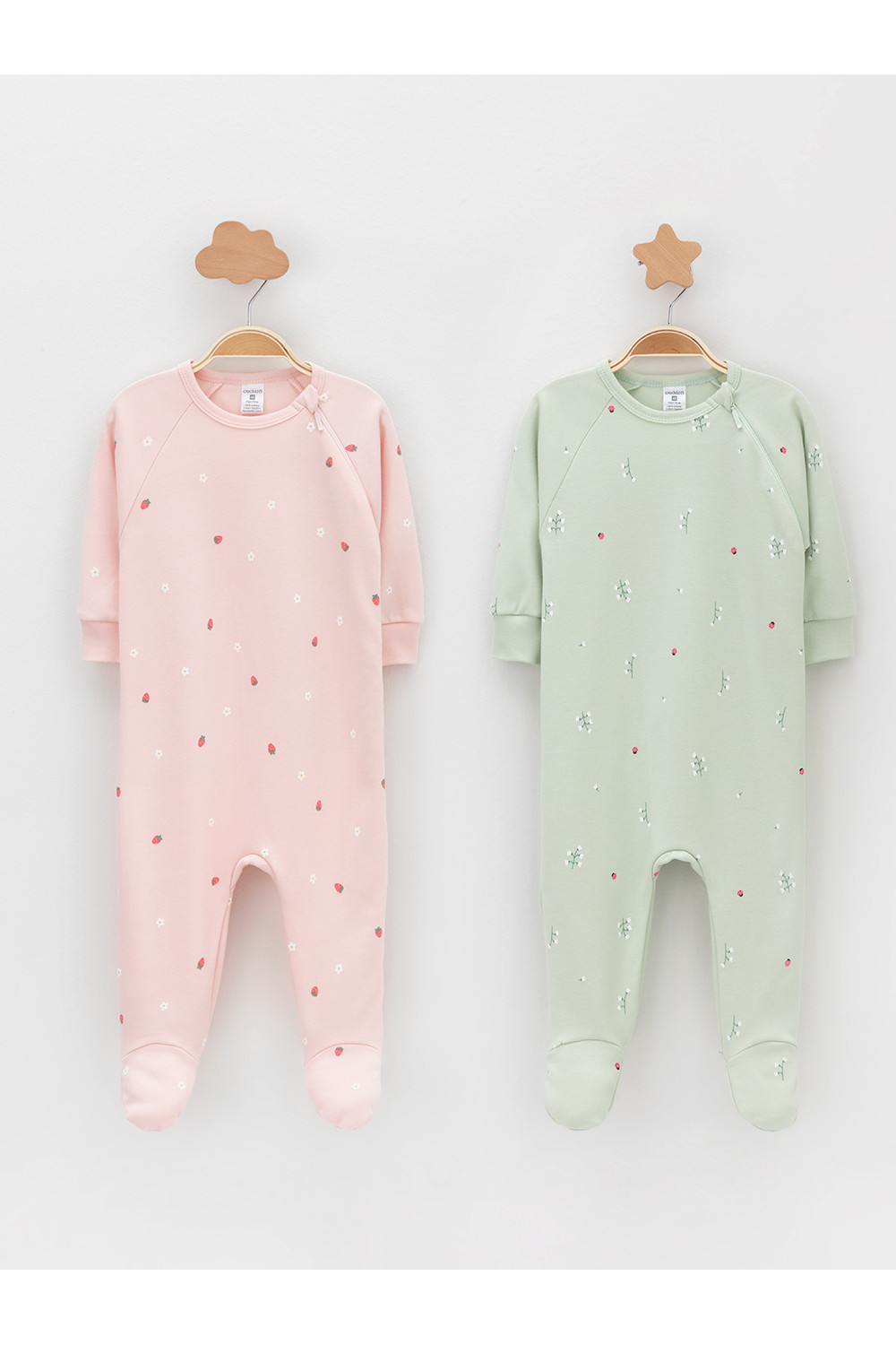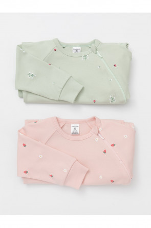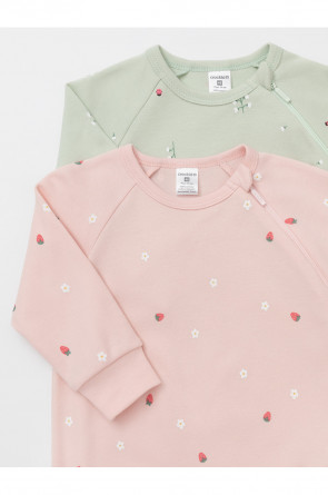 Комбинезоны для новорождённых из мягкого эластичного трикотажа интерлок, произведённого из натурального хлопка. В упаковке 2 штуки. Застёгиваются сбоку на молнию и на кнопку. Длинные рукава-реглан оканчиваются манжетами. Оригинальная набивка выполнена из стойких гипоаллергенных текстильных красителей. Все трикотажные полотна производятся в соответствии с нормами Швейцарского сертификата ЭкоТекс.