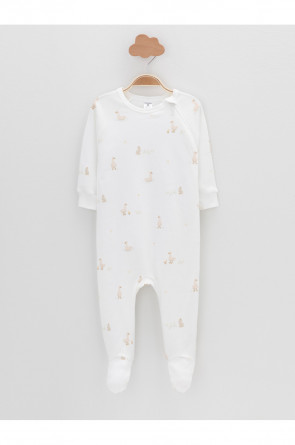 Комбинезоны для новорождённых из мягкого эластичного трикотажа интерлок, произведённого из натурального хлопка. В упаковке 2 штуки. Застёгиваются сбоку на молнию с мягкой защитой шеи и подбородка. Длинные рукава-реглан оканчиваются манжетами. Оригинальная набивка выполнена из стойких гипоаллергенных текстильных красителей. Все трикотажные полотна производятся в соответствии с нормами швейцарского сертификата ЭкоТекс.